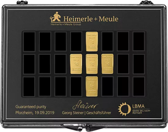 • 5 x 1 gram Heimerle Meule Goudbaar Unitybar – LBMA gecertificeerd