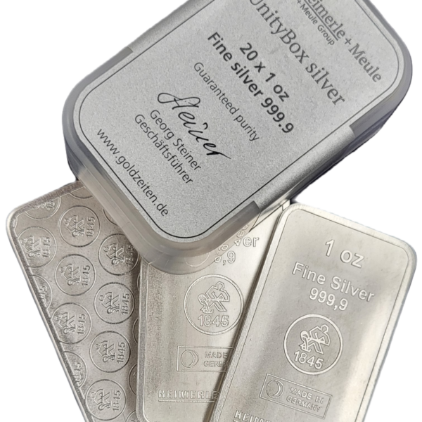 Deze baar van 1 gram wordt vervaardigd door de Duitse smelter Heimerle + Meule. Deze smelter is aangesloten bij de London Bullion Market Associoation (LBMA). Hierdoor is de kwaliteit en echtheid wereldwijd erkent, en zijn de baren eenvoudig verhandelbaar. De 1 gram baar is afkomstig uit een Unitybox waar 100×1 gram in zit. Middels het product wat u nu bekijkt, koopt u 1 gram zilver.