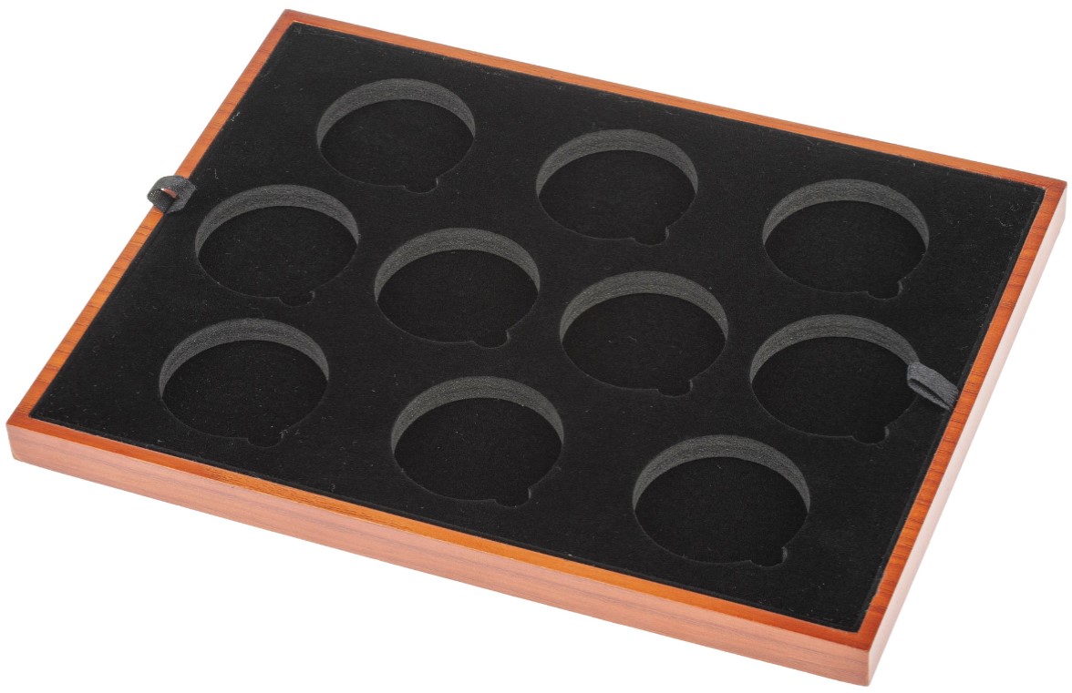Deze lade biedt ruimte voor 11 munten (maximale buitenmaat capsule is 39 mm) en is uitstekend geschikt voor de gouden Royal Tudor Beasts 1 oz.