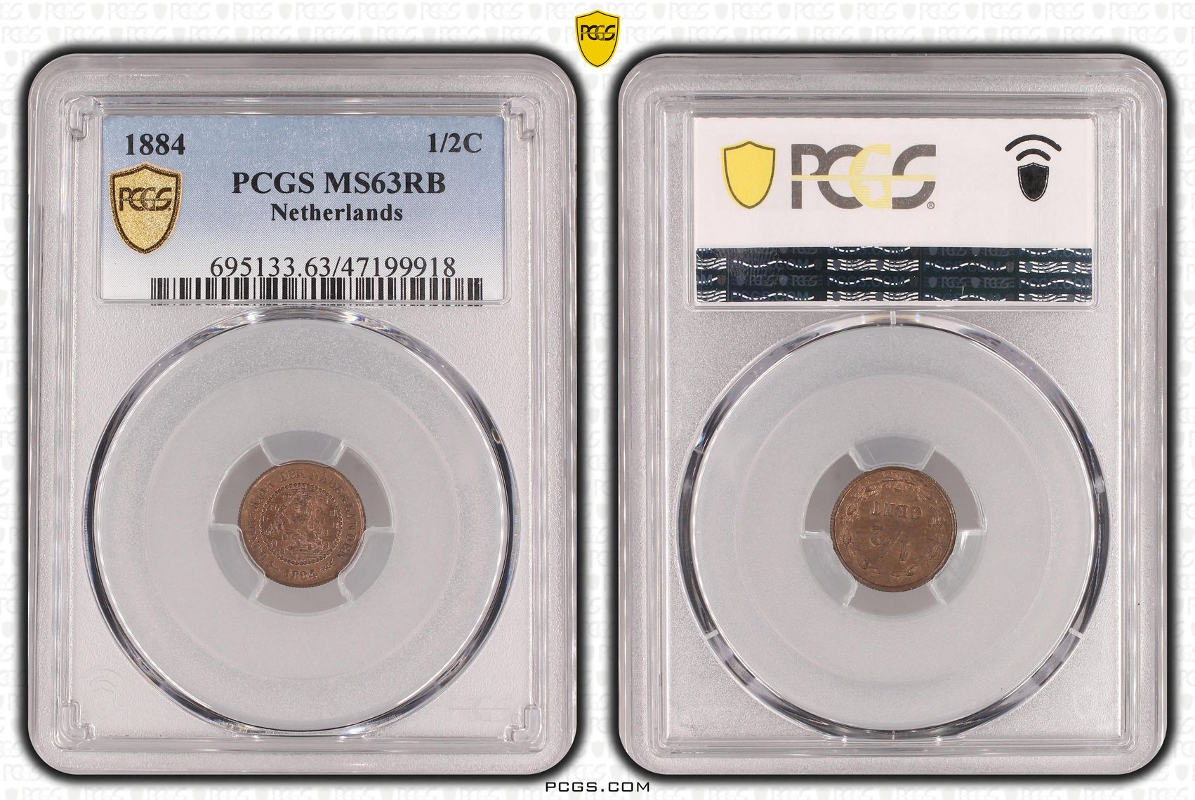 Koning Willem III 1/2 cent 1884 MS63 RB PCGS gecertificeerd (pop 1/2)