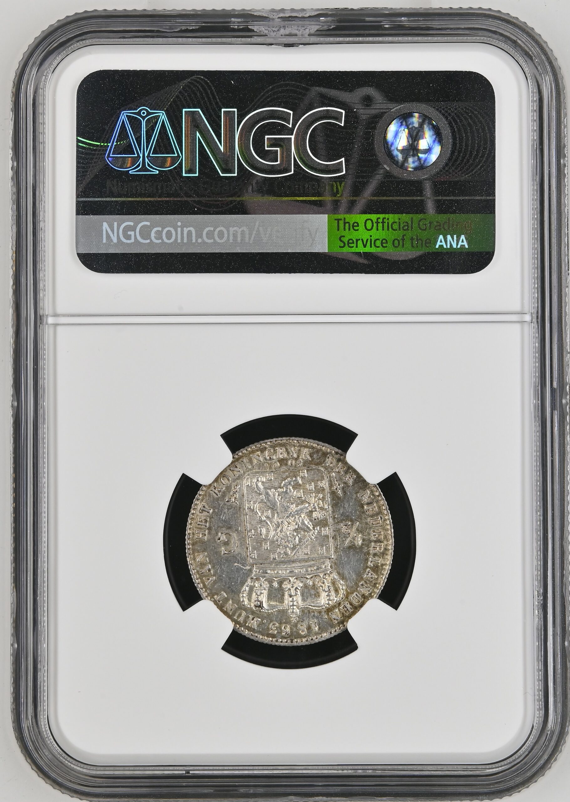 Deze munt wordt geleverd in de originele plastic slab zoals verstrekt door NGC, waardoor de authenticiteit en kwaliteit behouden blijven. Volgens de meest recente gegevens, gecontroleerd op 8 februari 2024, zijn er slechts twee exemplaren bekend in deze kwaliteit en slechts één hoger. Halve guldens zijn één van de moeilijkste munten om in MS te vinden!