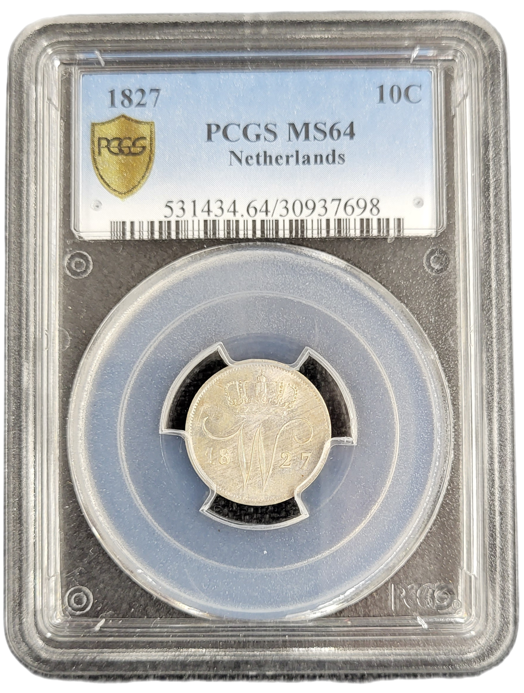 Koning Willem I 10 cent 1827 Utrecht MS64 PCGS (pop 8/20)