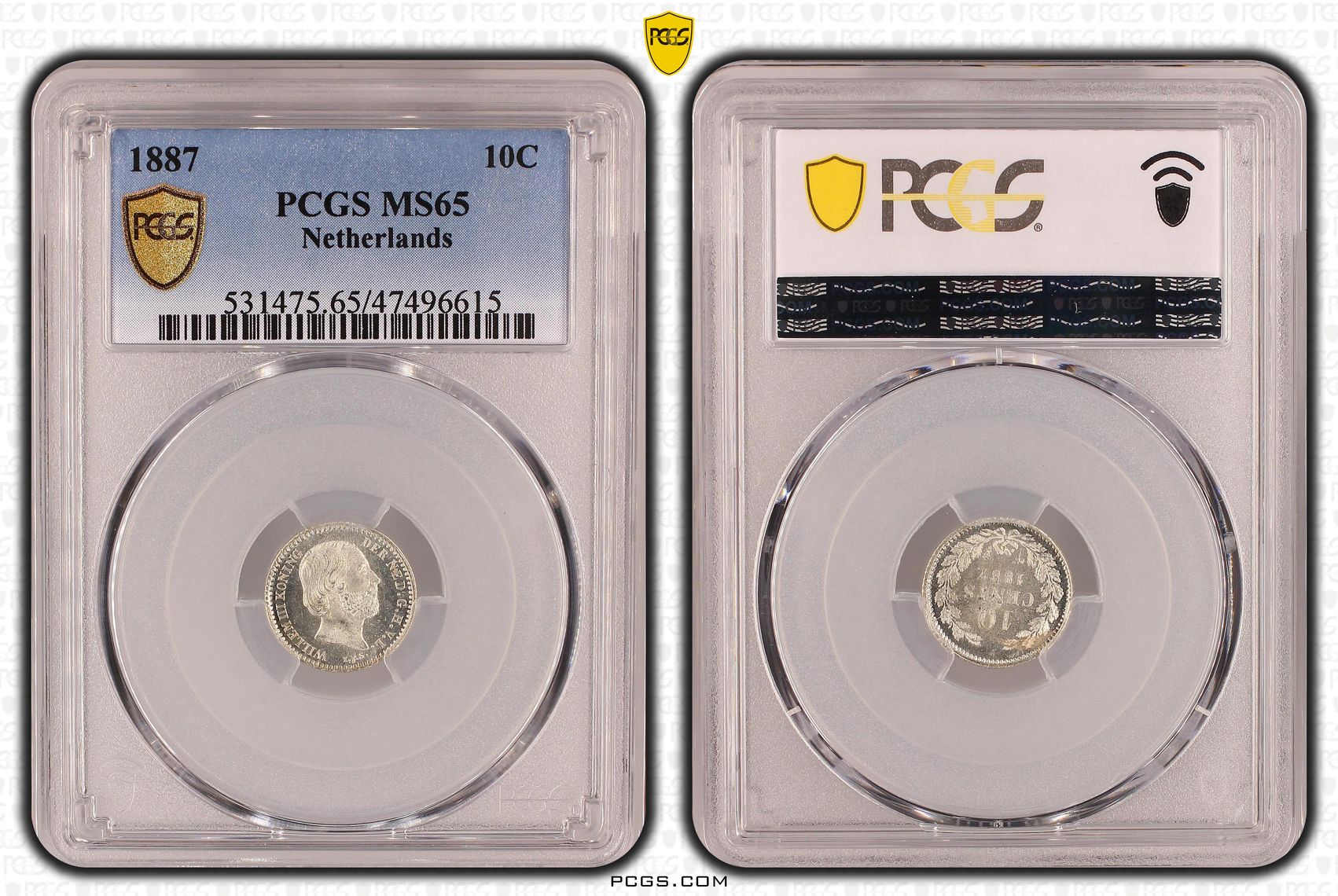 Koning Willem III 10 cent 1887 MS65 PCGS (pop 2/7)