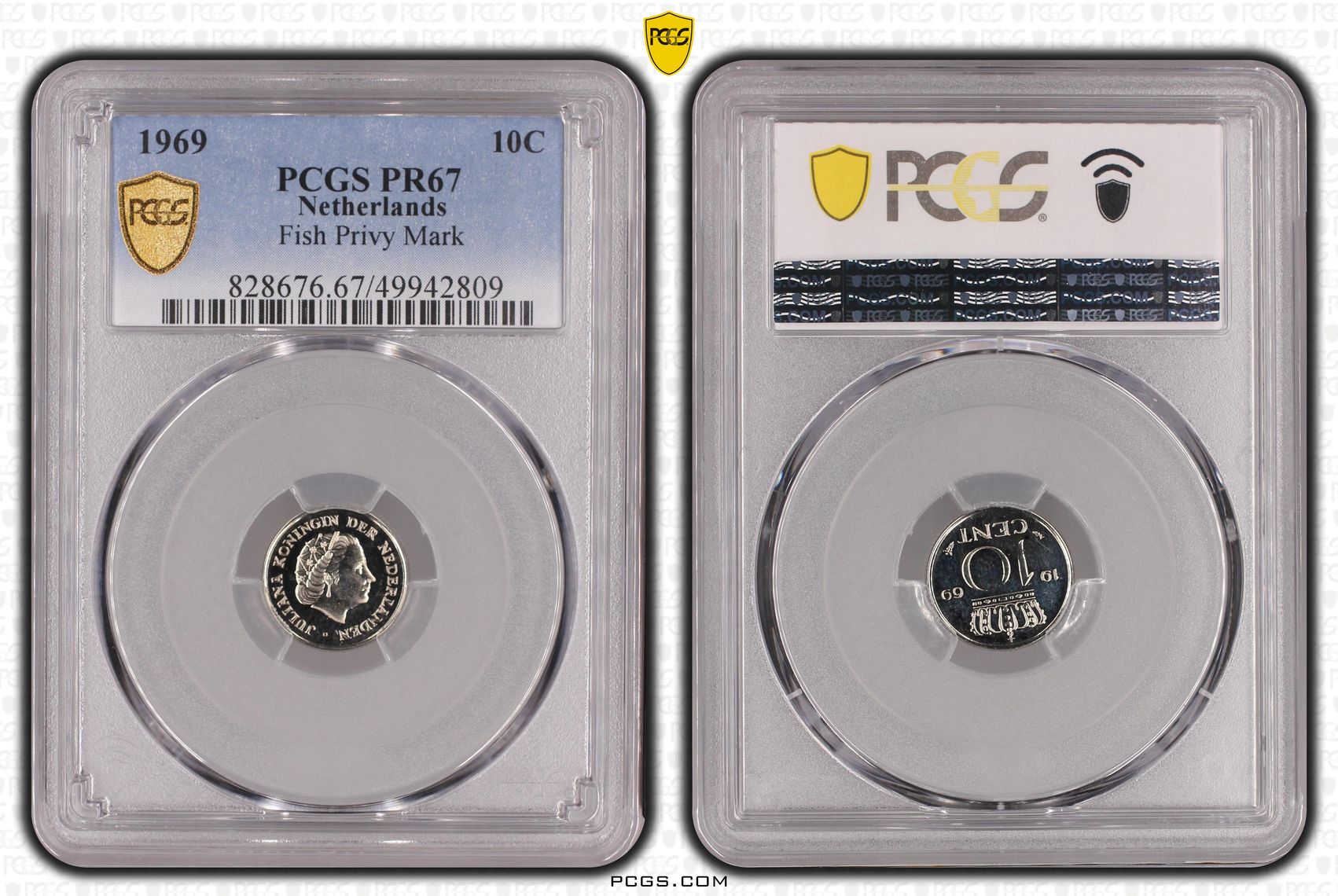 Koningin Juliana 10 cent 1969 vis Proof PCGS PR67 (pop 4/1)