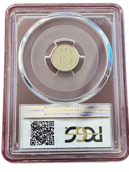 Deze door PCGS gecertificeerde en geslabde nikkelen 10 cent munt uit 1970 is een uitstekend voorbeeld van de hoge kwaliteit Proof Cameo (CAM) munten die zijn geslagen ter ere van Koningin Juliana. Met een PR64CAM-beoordeling behoort deze munt tot een selecte groep, met slechts drie exemplaren in deze kwaliteit geregistreerd bij PCGS. Daarnaast zijn er vijf munten bekend met een hogere PR-CAM score, wat de exclusiviteit van dit stuk benadrukt.