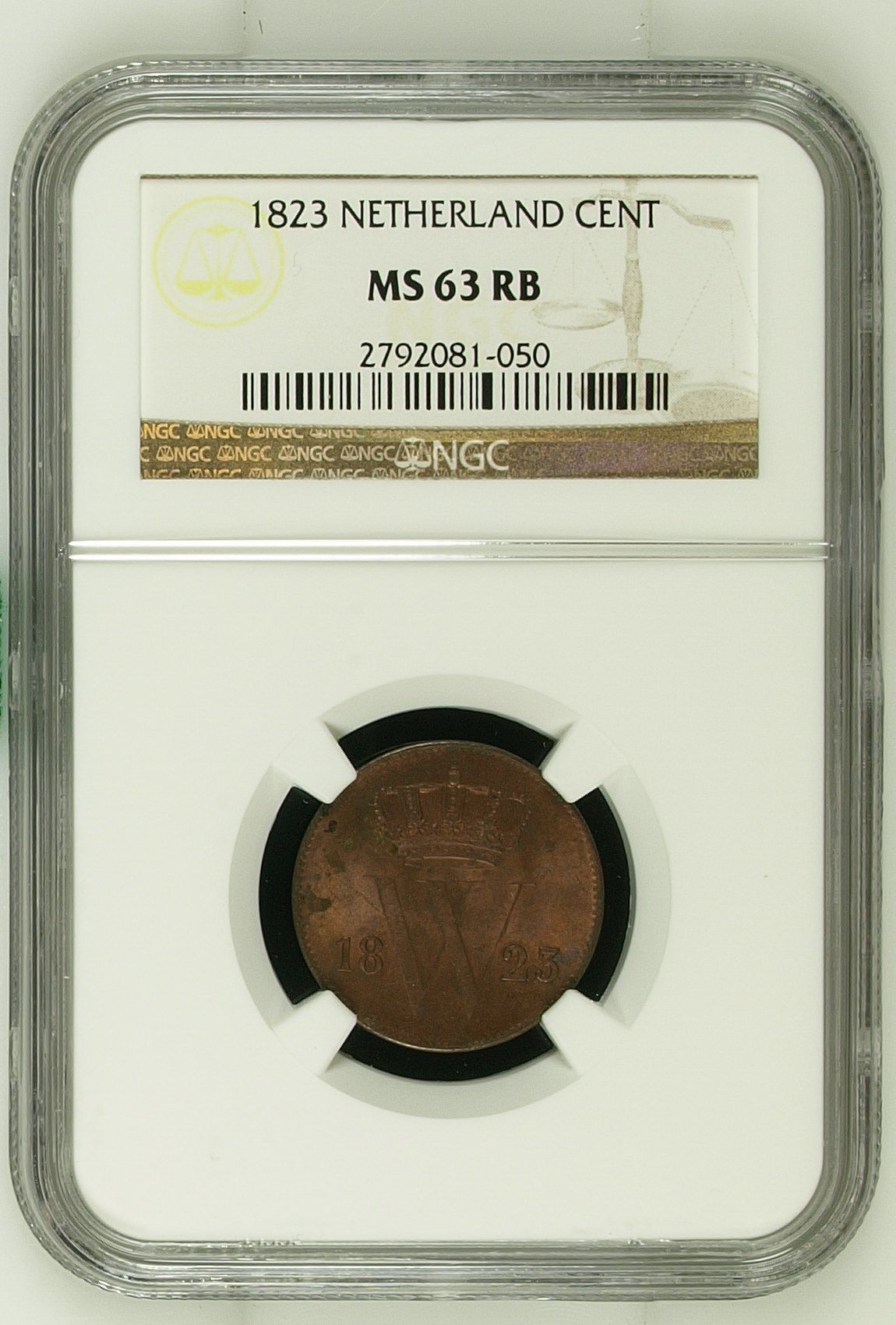 Koning Willem I – 1 Cent 1823 Utrecht MS63 RB NGC (Top pop 2/0)