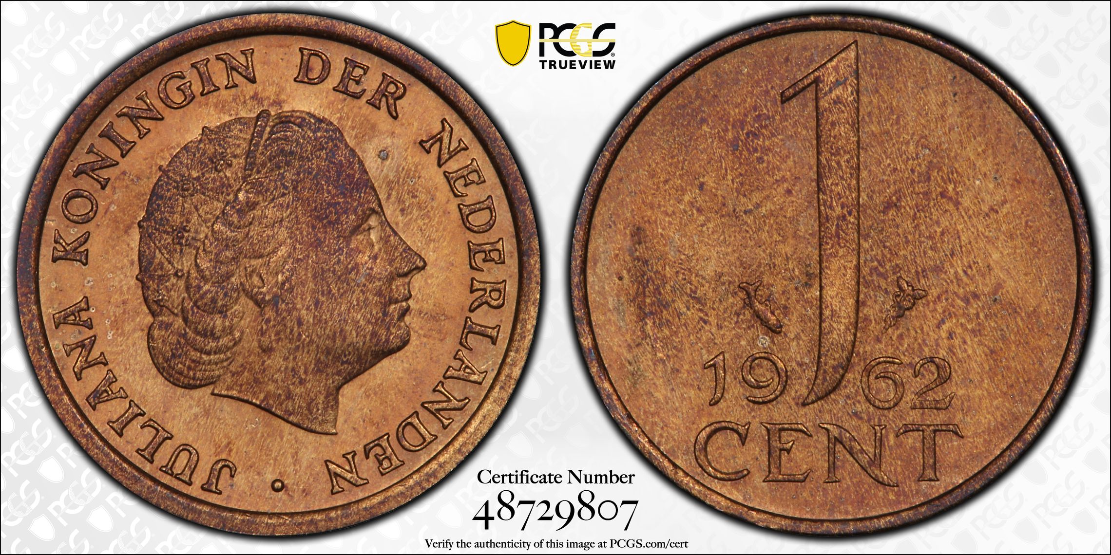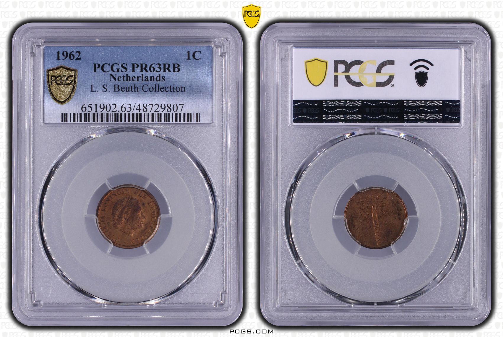 Koningin Juliana 1 cent 1962 Proof PR63 RB L.S. Beuth Coll. PCGS (pop 1/5)