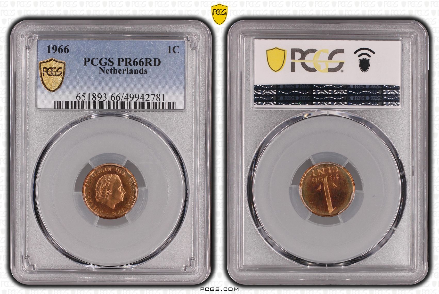 Zeldzame Koningin Juliana 1 Cent 1966 Proof PR66 Red PCGS (Top Pop 1/0, Single Finest)