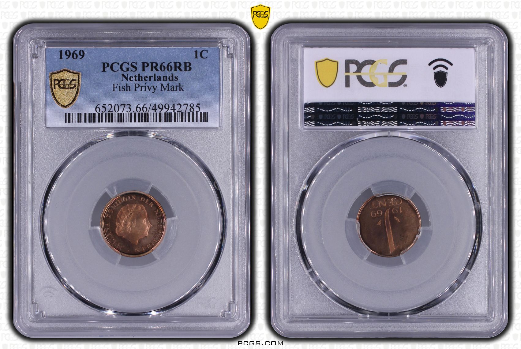 Koningin Juliana 1 Cent 1969 Vis Proof PR66 RB – Zeer Zeldzaam Collectorsitem