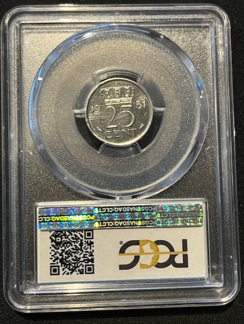 Deze zeldzame set, door PCGS gecertificeerd bevat de 1 cent 1951 in PR64RD, 5 cent 1954 in PR66RB, 10 cent in PR66Cam en de 25 cent in PR64, allen geslagen met gepolijste stempel op gepolijst muntplaatje. Wij verkopen deze vier munten als complete set. Deze set komt zelden voor compleet en heeft een lage oplage, van waarschijnlijk niet meer dan 35 stuks.