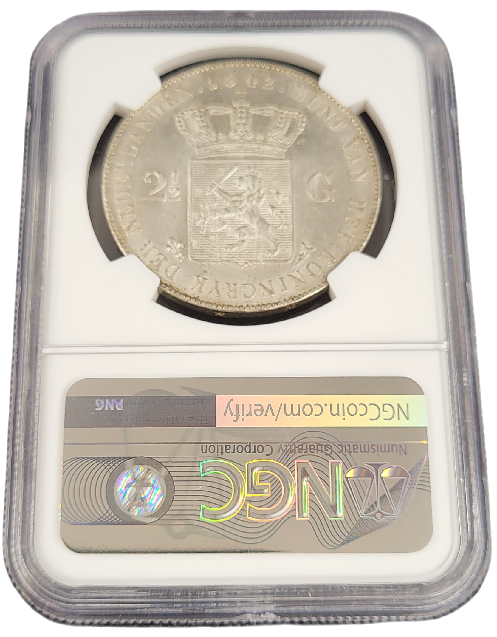 Koning Willem II 2 1/2 gulden 1842 AU58 NGC (pop 2/1) kwaliteit in slab