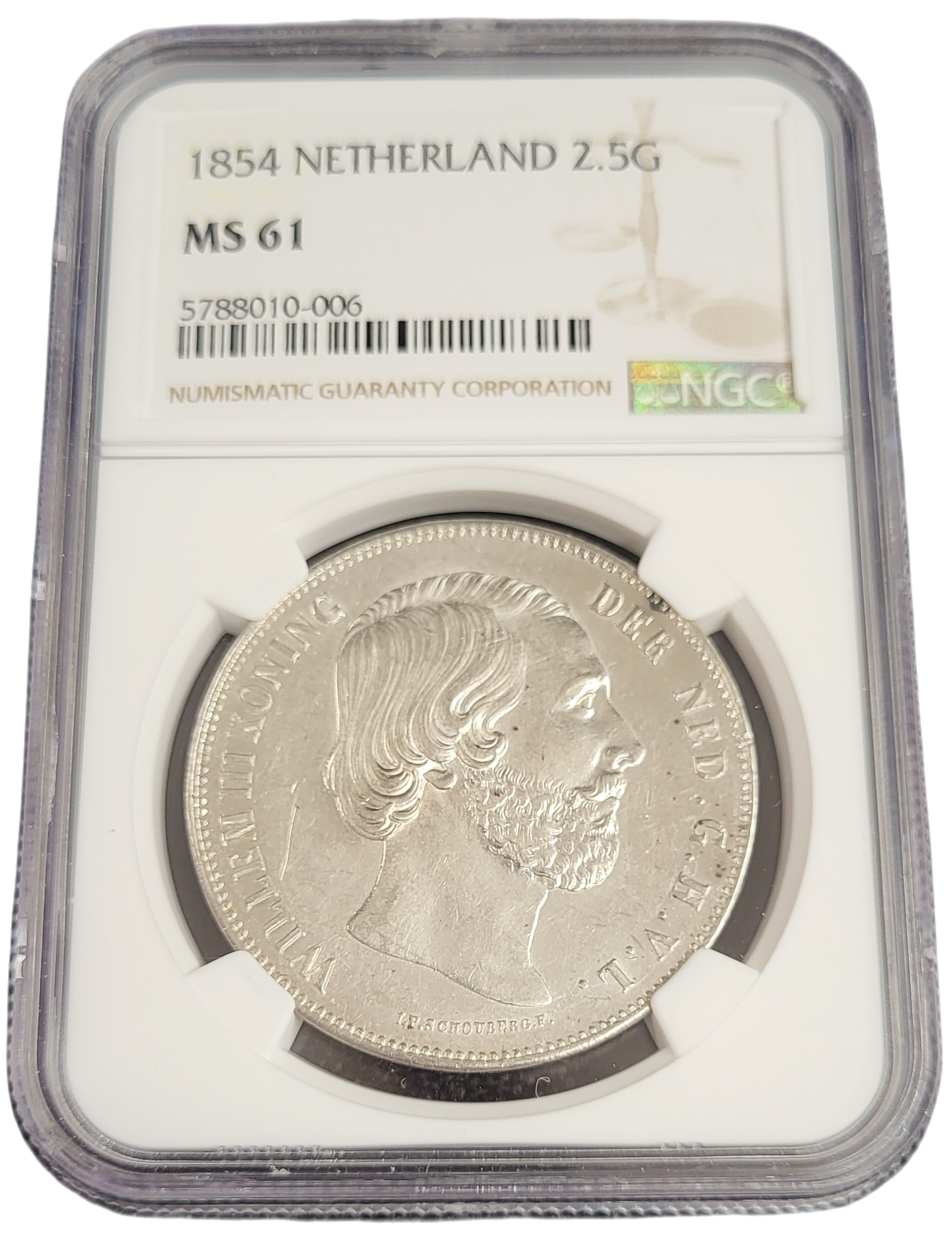 Koning Willem III 2 1/2 gulden 1854 MS61 NGC gecertificeerd (pop 2/1)