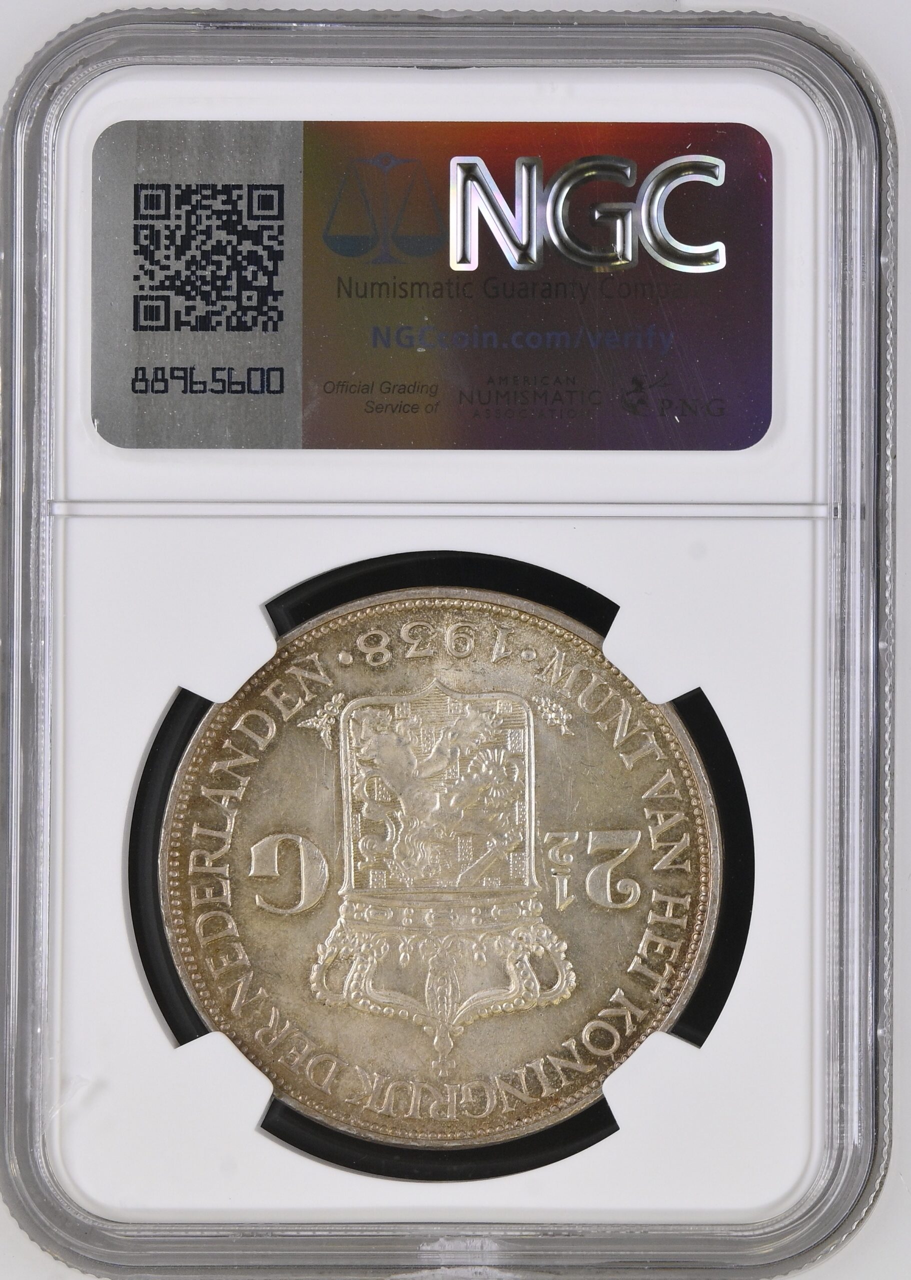 🔗 NGC Certificaat – 2½ Gulden 1938 Grof Haar MS63