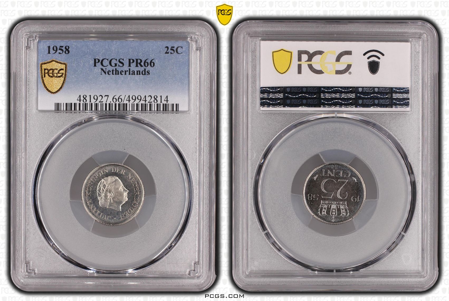 Koningin Juliana 25 cent 1958 Proof PCGS PR66 (pop 3/1)