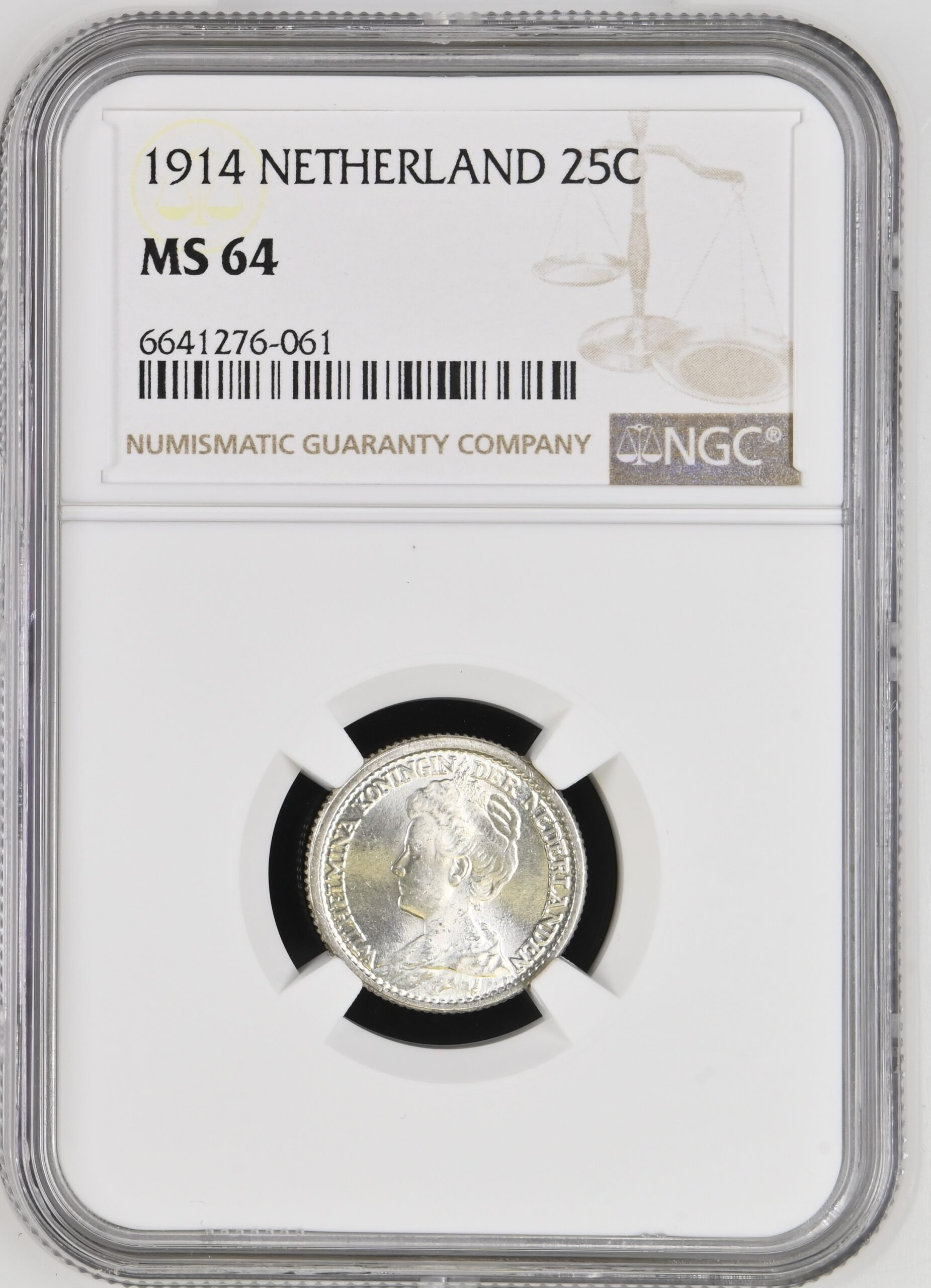 Koningin Wilhelmina 25 cent 1914 MS64 NGC Pop 1/1
