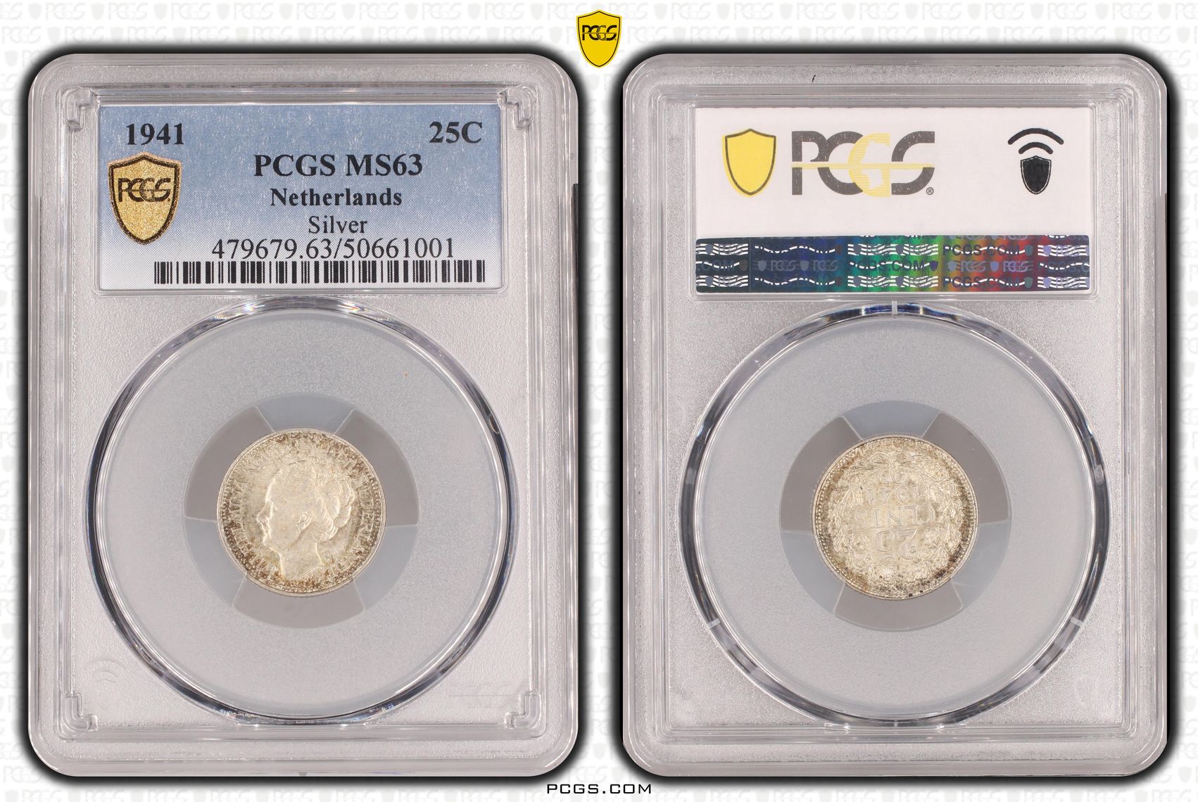 Koningin Wilhelmina 25 cent 1941 MS63 PCGS (Pop 10/14)