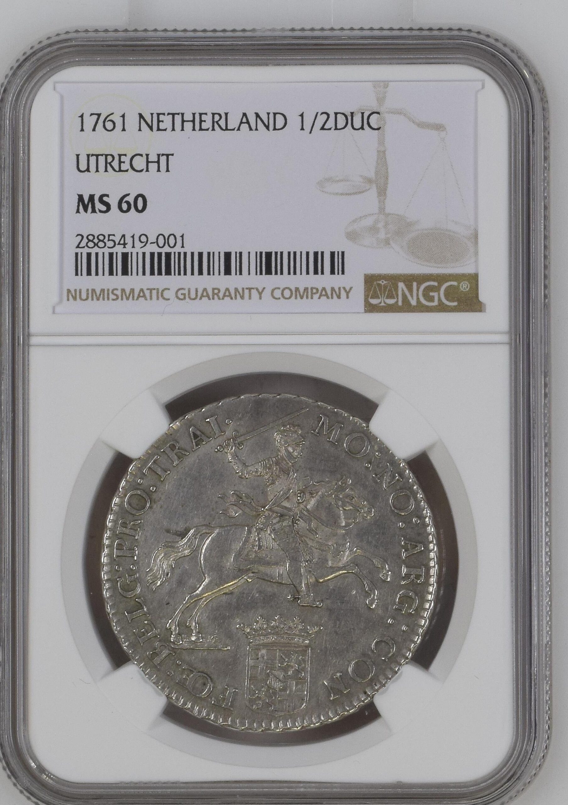 Provincie Utrecht – Zilveren Halve Dukaton 1761 met Bloemrand – NGC MS60 (Pop 1/11)