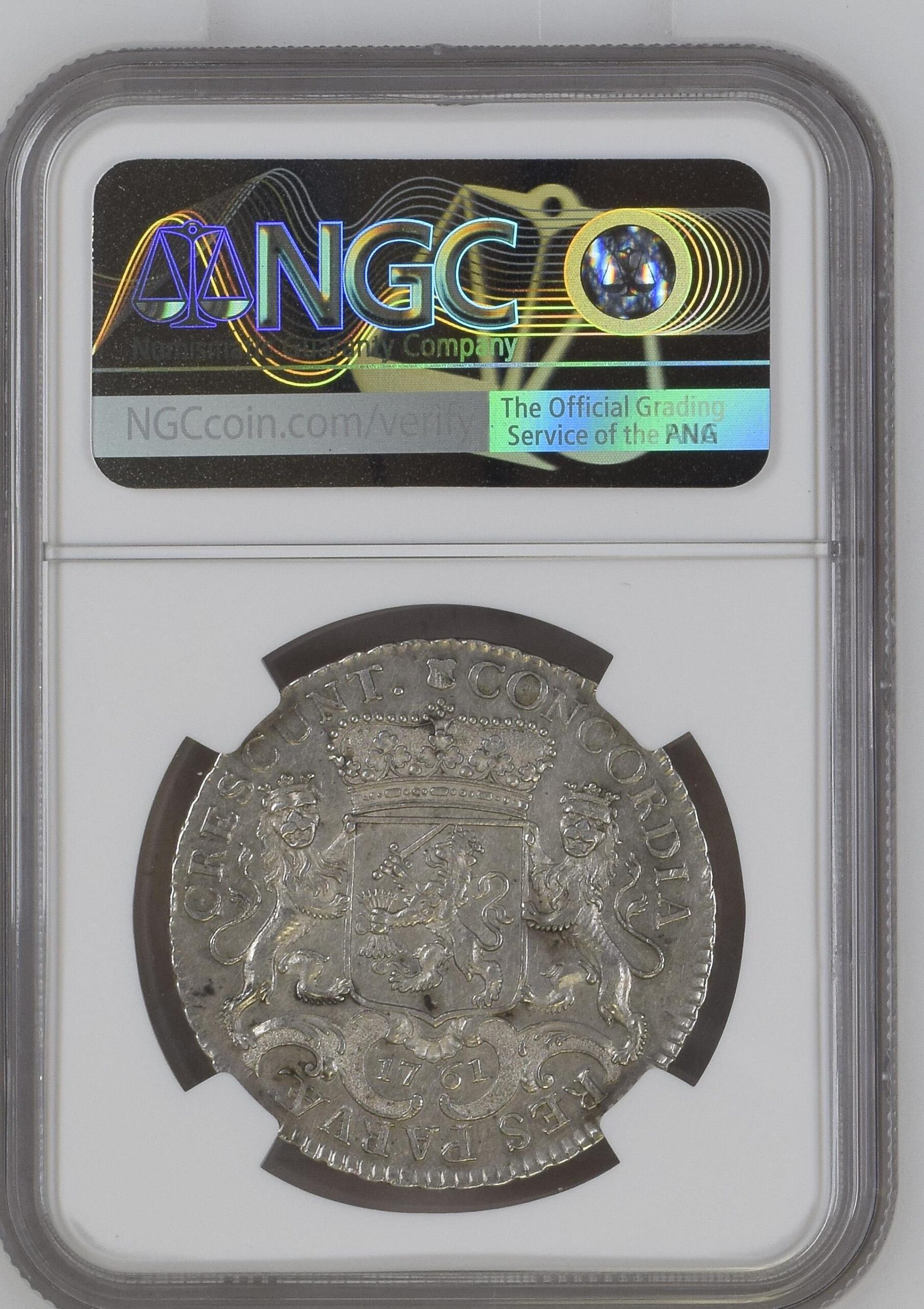 Deze zeldzame zilveren halve dukaton uit 1761 werd geslagen in de provincie Utrecht tijdens de Republiek der Zeven Verenigde Nederlanden. Opvallend is de bijzondere bloemrand, in de vorm van een tulp, wat dit exemplaar onderscheidt van de gebruikelijke kartelrand. Munten met deze bloemrand vertonen vaak een prooflike veld – ook bij dit stuk is dat goed zichtbaar, met een mooi contrast tussen de spiegelende vlakken en de matte, hooggelegen details. De munt is in originele, ongereinigde staat.