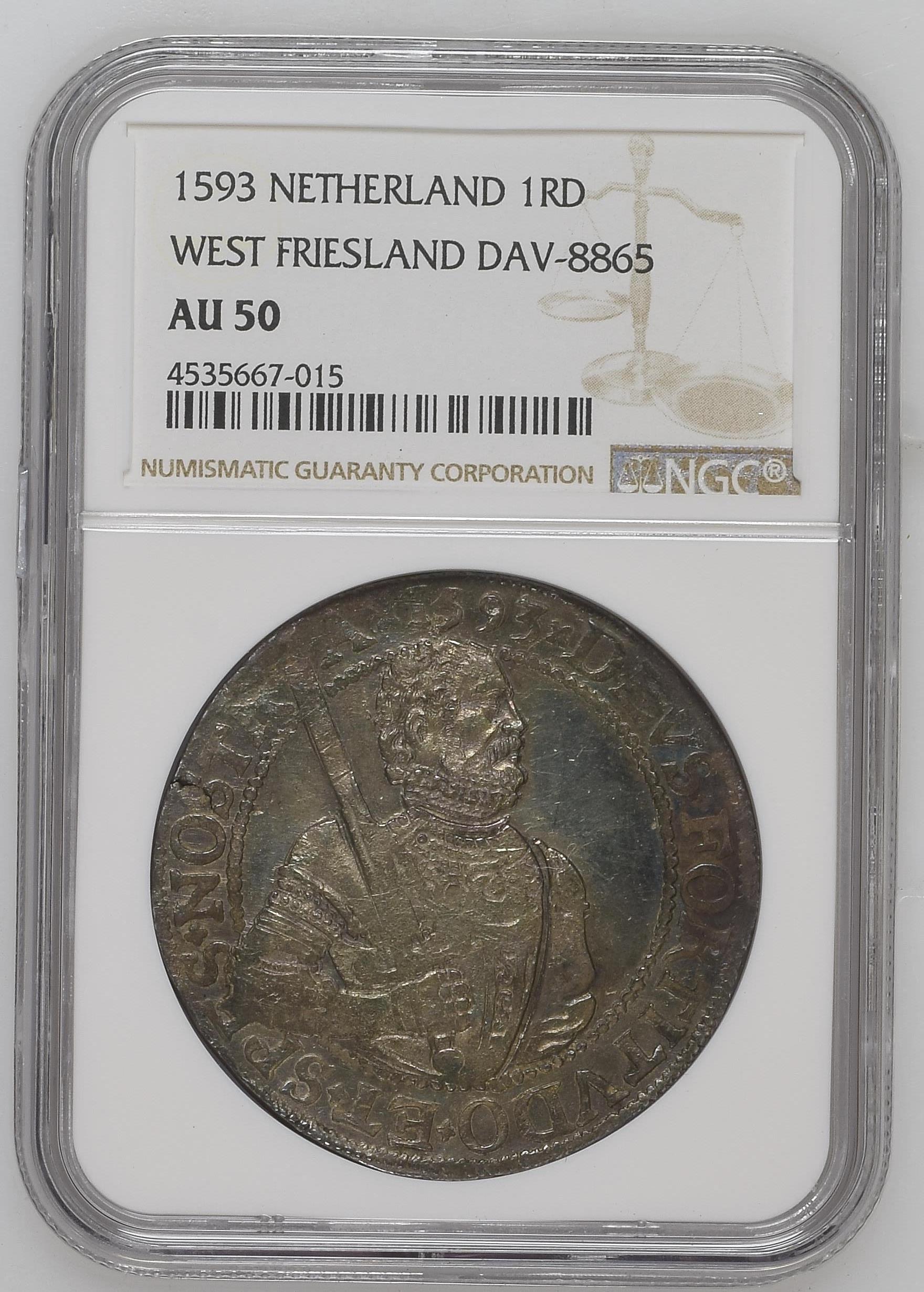 Provincie West-Friesland Prinsendaalder 1593 | NGC AU50 – Zeldzaam Exemplaar met Patina (Pop 1/3)