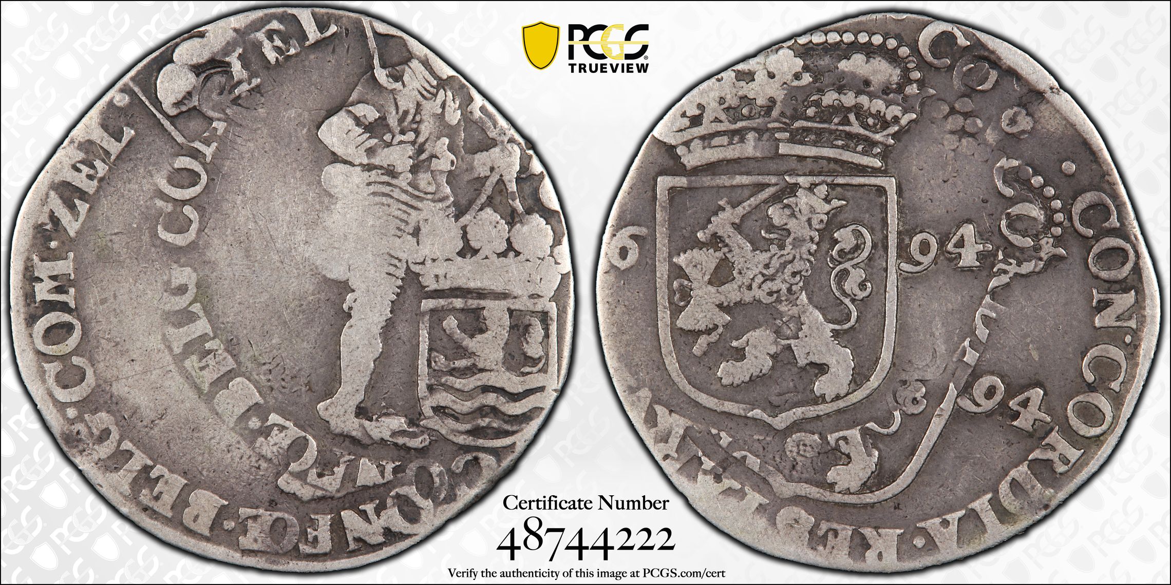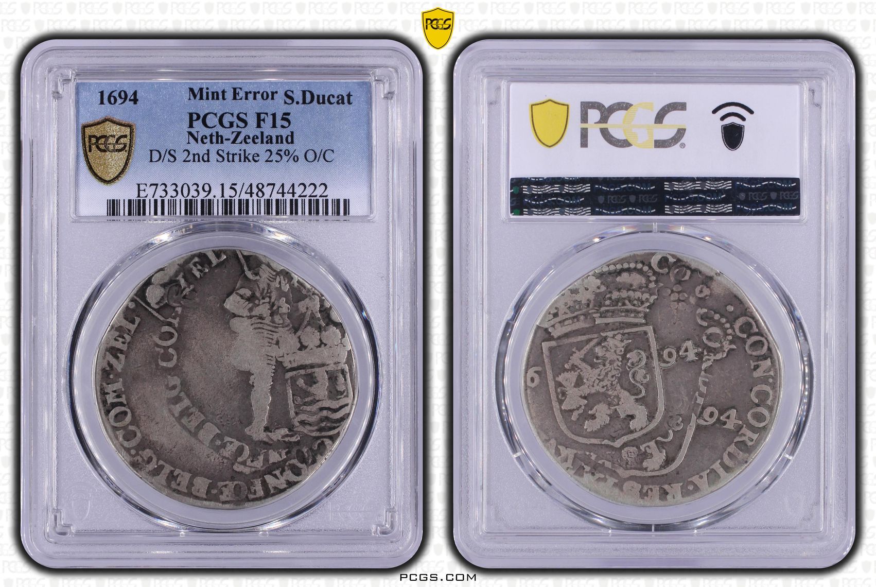 Provincie Zeeland Zilveren Dukaat 1694 – Misslag / Dubbelslag | PCGS F15