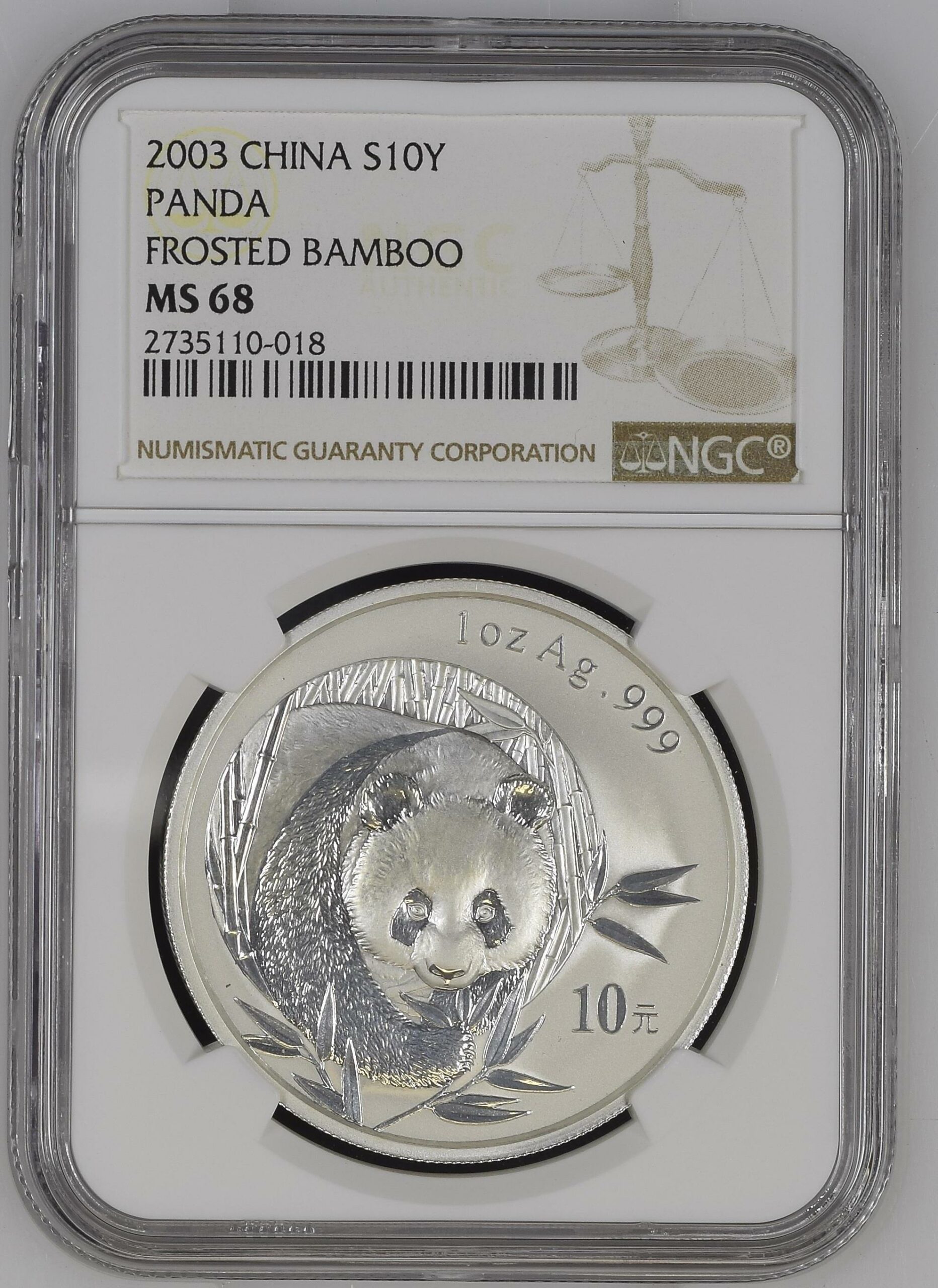 Chinese Panda 1 oz 2003 Frosted Bamboo NGC MS68
