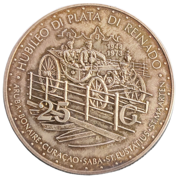 Deze bijzondere munt werd geslagen ter ere van het 25 – jarig jubileum van Aruba’s “Status Aparte”, een historische mijlpaal in 2011 toen Aruba een apart land werd binnen het Koninkrijk der Nederlanden.
