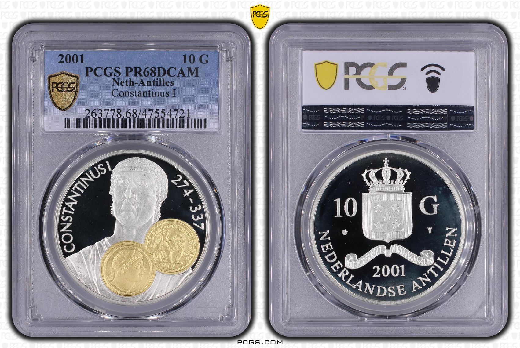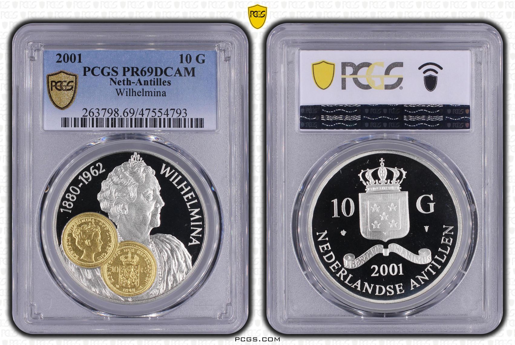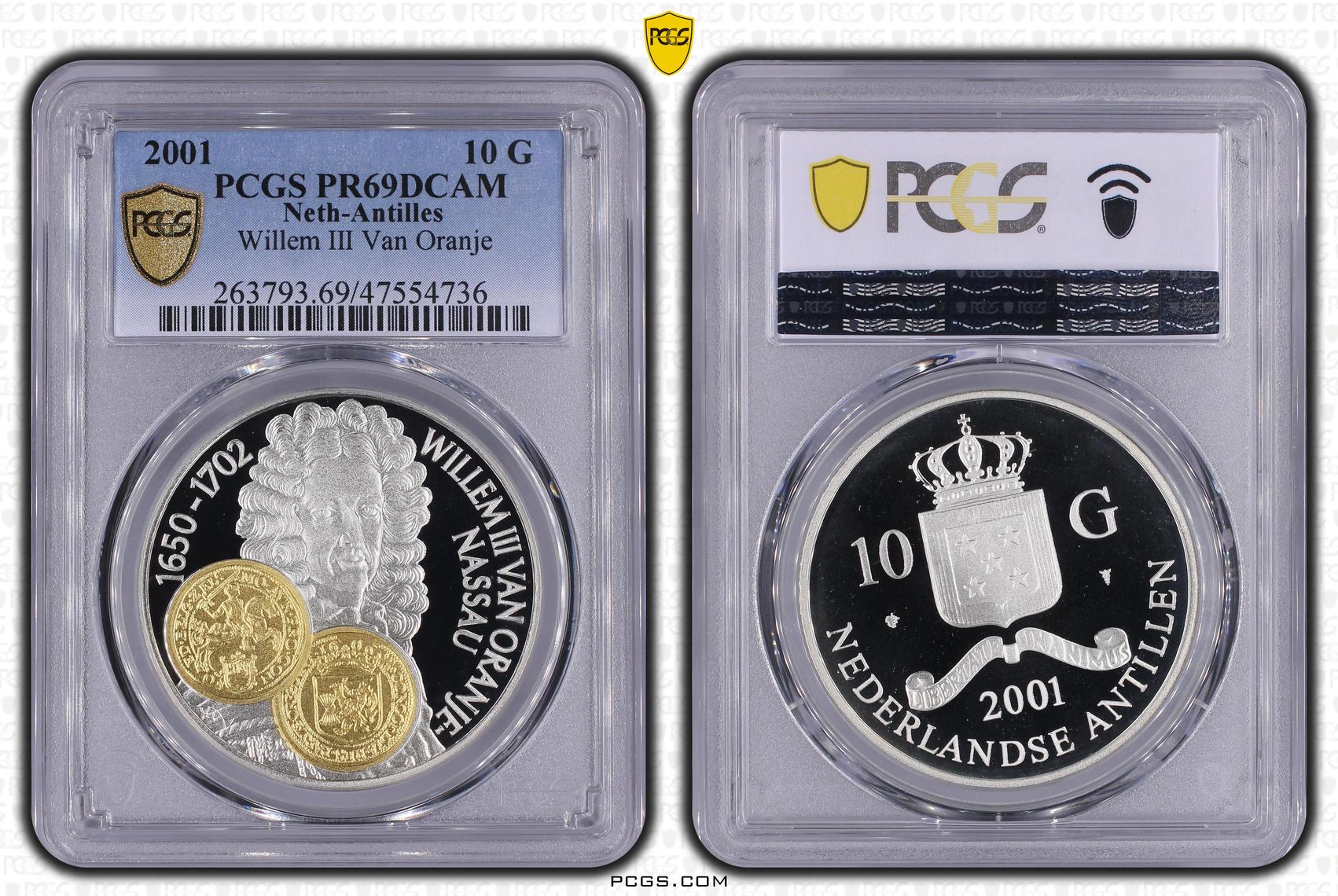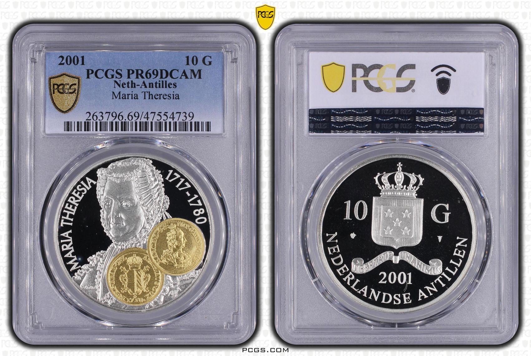 De complete serie Handelsmunten door PCGS gecertificeerd en geslabt. De serie bestaat uit 24 zilveren 10 gulden 2001 handelsmunten van de Nederlandse Antillen. De munten hebben allemaal belangrijke heersers die een handelsmunt hebben ingevoerd in hun land, bijvoorbeeld George III met de handelsmunt de Sovereign, Alle munten hebben een gouden inlay van 0.62 gram met de handelsmunt afgebeeld. De door PCGS bepaalde kwaliteit varieerd tussen PR67 en PR69. Bij PCGS is dit de enige complete set in deze kwaliteit. Bij PCGS zijn er geen munten hoger gecertificeerd (Top Pop voor alle munten).