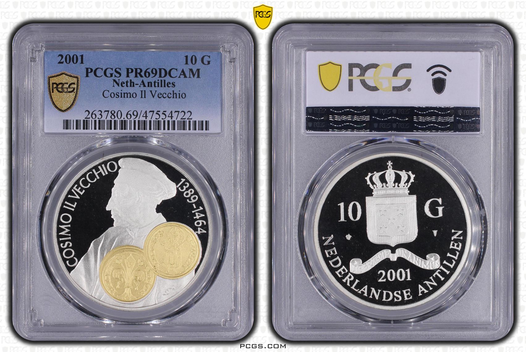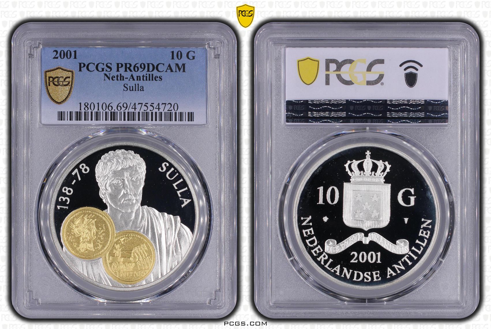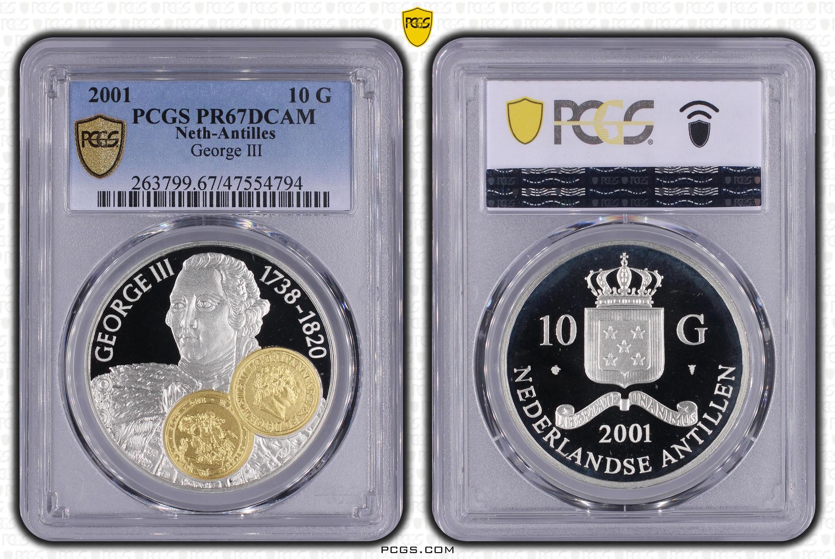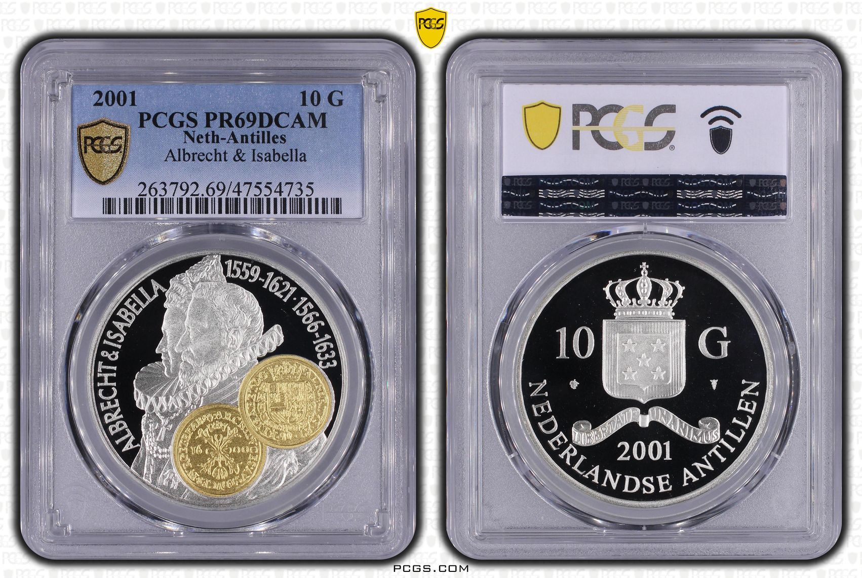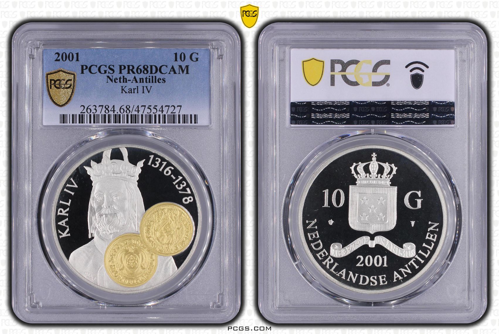 De complete serie Handelsmunten door PCGS gecertificeerd en geslabt. De serie bestaat uit 24 zilveren 10 gulden 2001 handelsmunten van de Nederlandse Antillen. De munten hebben allemaal belangrijke heersers die een handelsmunt hebben ingevoerd in hun land, bijvoorbeeld George III met de handelsmunt de Sovereign, Alle munten hebben een gouden inlay van 0.62 gram met de handelsmunt afgebeeld. De door PCGS bepaalde kwaliteit varieerd tussen PR67 en PR69. Bij PCGS is dit de enige complete set in deze kwaliteit. Bij PCGS zijn er geen munten hoger gecertificeerd (Top Pop voor alle munten).