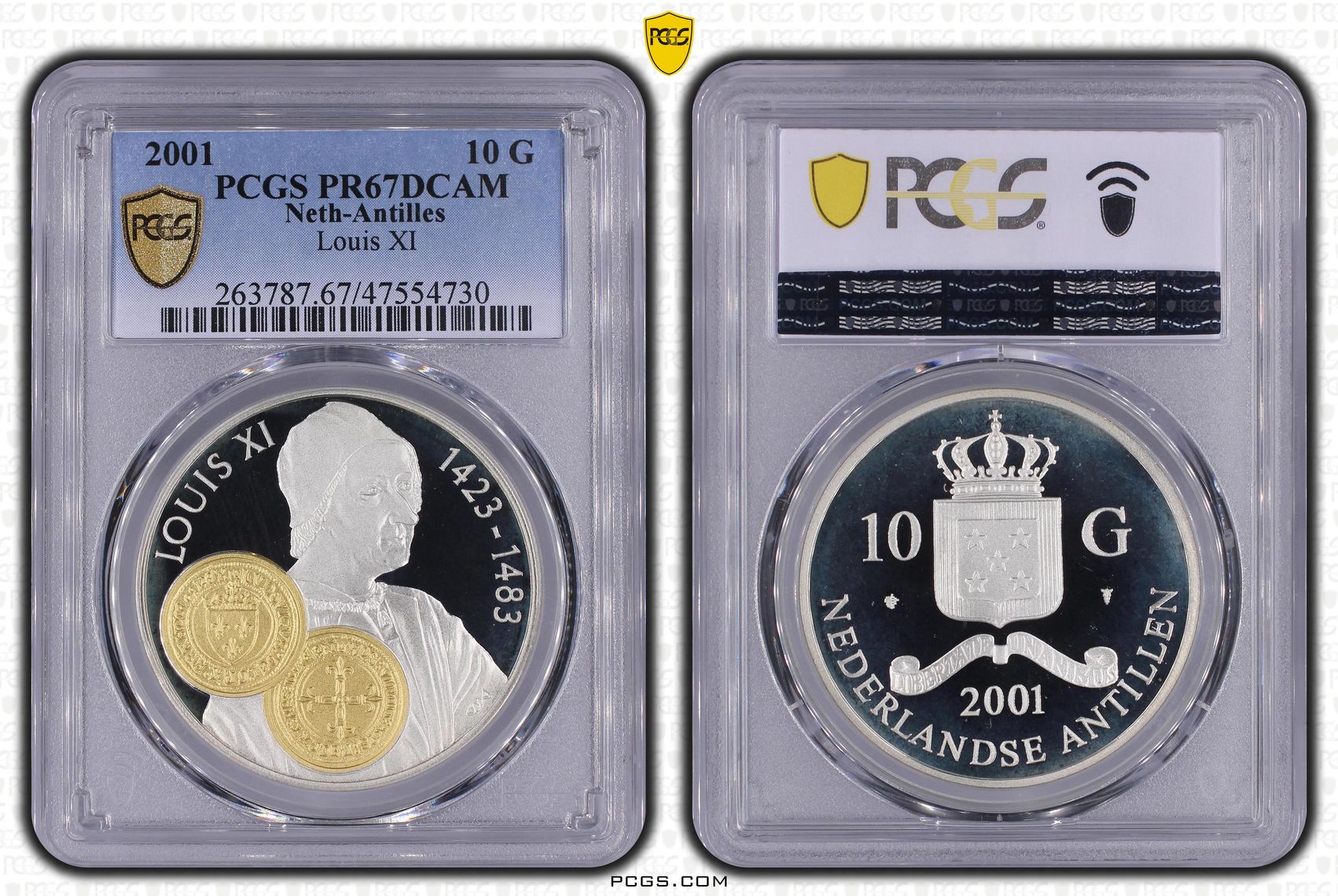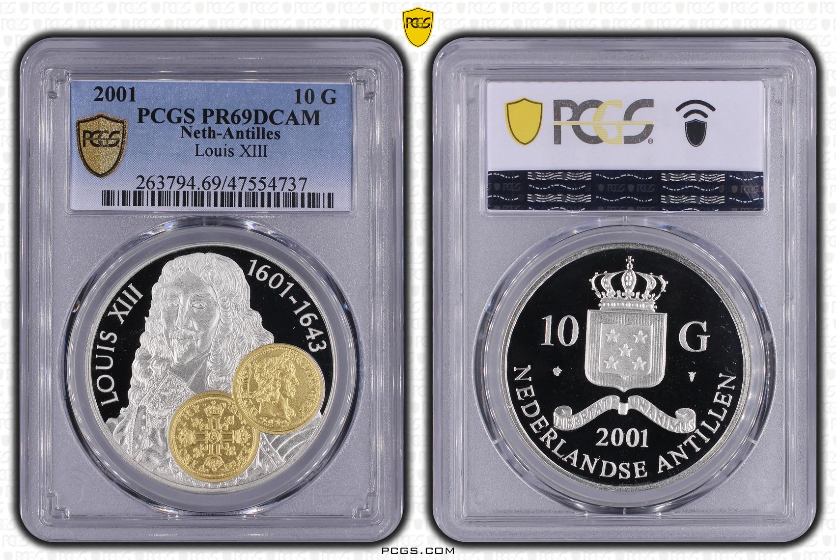 Nederlandse Antillen 10 gulden 2001 Handelsmunten (24 stuks) – gouden inlay 0.62 gram – PCGS PR67/ PR69 (Top Pop 1/0)
