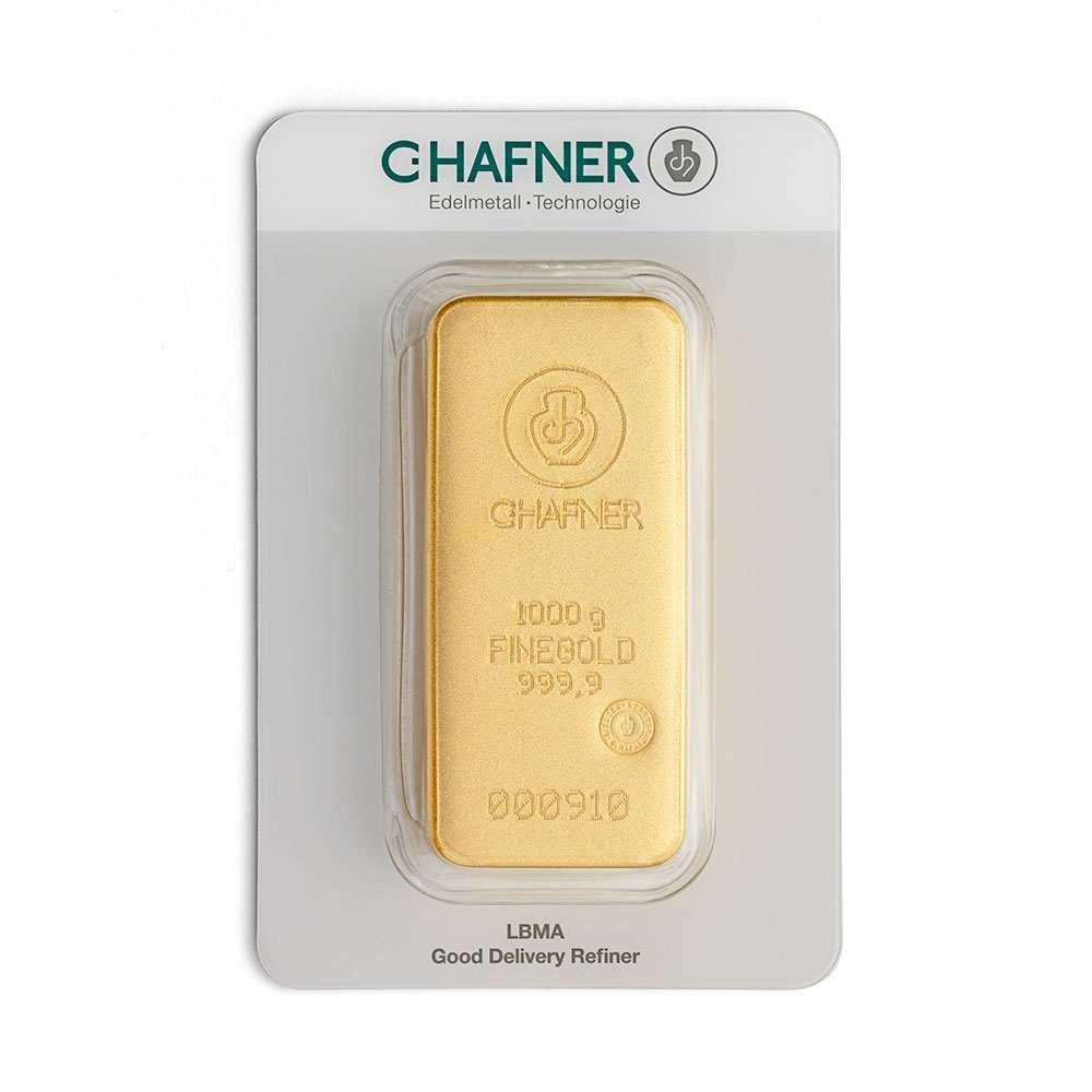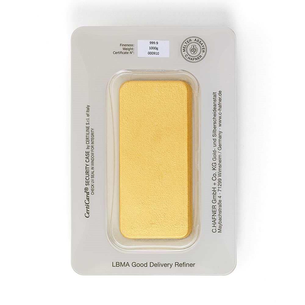 Ongetwijfeld een van de mooiste baren die op de markt is!! De baren wegen 1 kilogram en bevatten 99,99% goud. De baren zijn geproduceerd door C. Hafner uit Duitsland. De baren hebben het LMBA Good Delivery Refiner keurmerk. Deze baren zijn gegoten.