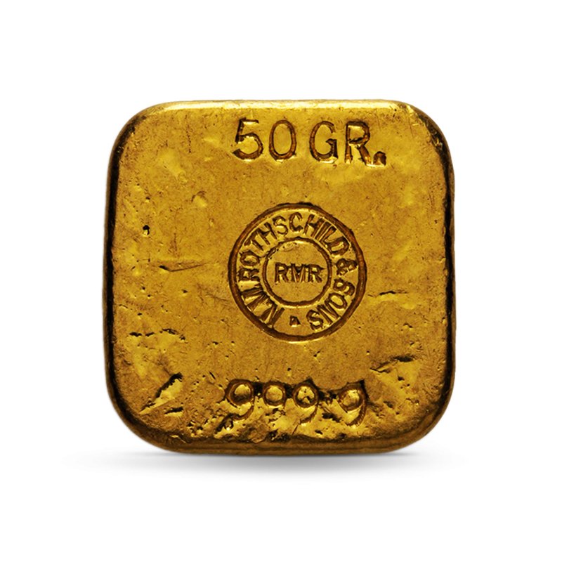 De baren wegen 50 gram, en bevatten 99,99% goud. De baren zijn geproduceerd door Rothschild & Sons.