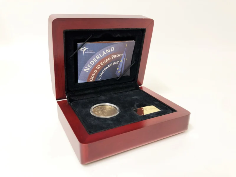 De gouden 10 euro 2004 proof Europamunt is een uniek verzamelobject dat zowel de uitbreiding van de Europese Unie als het Nederlandse voorzitterschap van de EU in 2004 viert. Met zijn beperkte oplage en het zorgvuldig doordachte ontwerp is deze munt een waardevolle toevoeging aan elke numismatische collectie. De munt wordt zorgvuldig verpakt en geleverd met een certificaat van echtheid (de witte omdoos kan beschadigd of beschreven zijn).