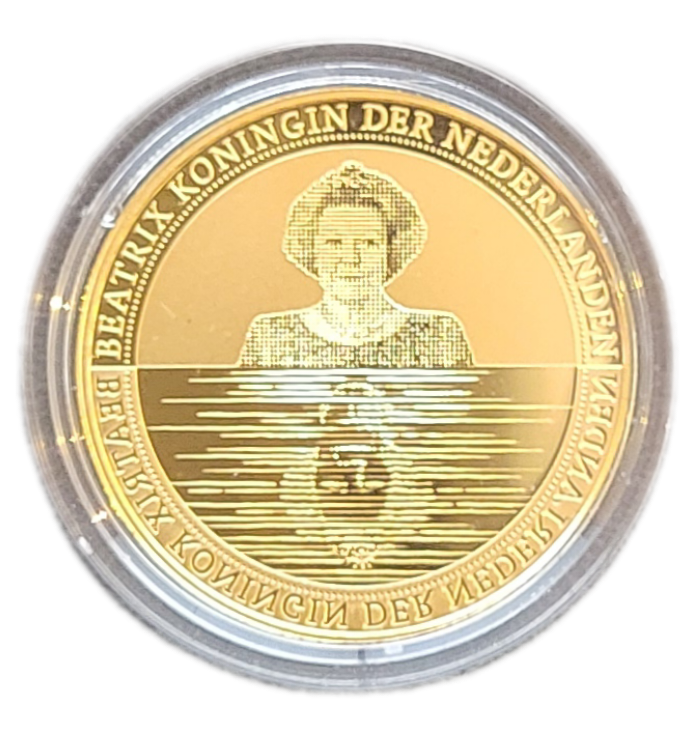 Het Waterland Tientje is veel meer dan alleen een munt; het is een kunstwerk op zich. Het ontwerp, gerealiseerd door Esther Tielemans in samenwerking met grafisch ontwerpbureau Raza en Thomas Bennen, brengt de diepe band tussen Nederland en water tot leven. De kopzijde toont een prachtig spiegelbeeld van de koningin in het water, omringd door de tekst “BEATRIX KONINGIN DER NEDERLANDEN”. De muntzijde onthult Nederland in al zijn glorie, verdeeld tussen het laaggelegen en het hooggelegen land, met symbolische strepen die het water vertegenwoordigen. De waarde “10 euro” en het jaartal zijn prominent aanwezig, terwijl de ring rondom de munt een krachtige waterkering symboliseert.