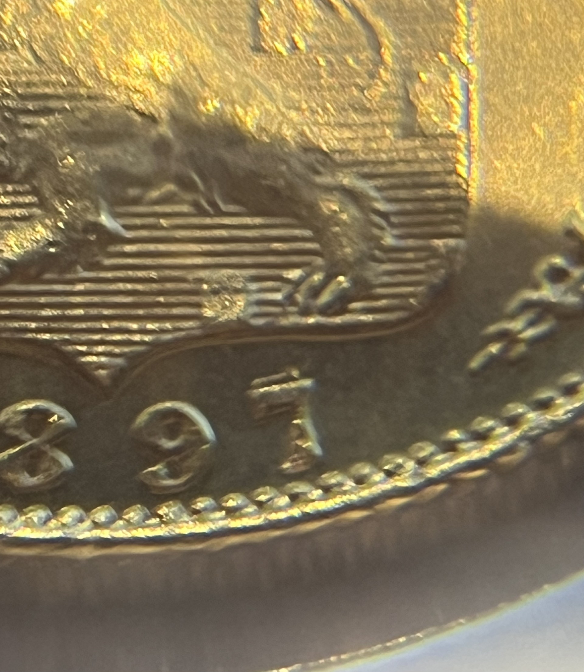 De gouden 10 gulden 1897 over 189(7), is een variant van de 10 gulden 1897 losse parels met de dubbel geplaatste 7, oplage van 344.925 stuks in totaal. Daarnaast bestaat er ook het gouden tientje 1897 met de parels vast. U kunt de variatie herkennen aan de muntzijde (jaartalzijde), de parelrand zit los aan de rand (volledige parels). Van deze versie met parels los zijn meerdere variaties bekend, zoals de overslag uit 1892, met een extra streepje onder de 7 en de dubbel geplaatste 7.