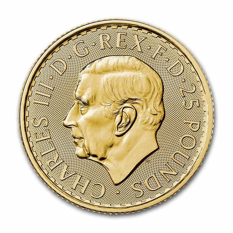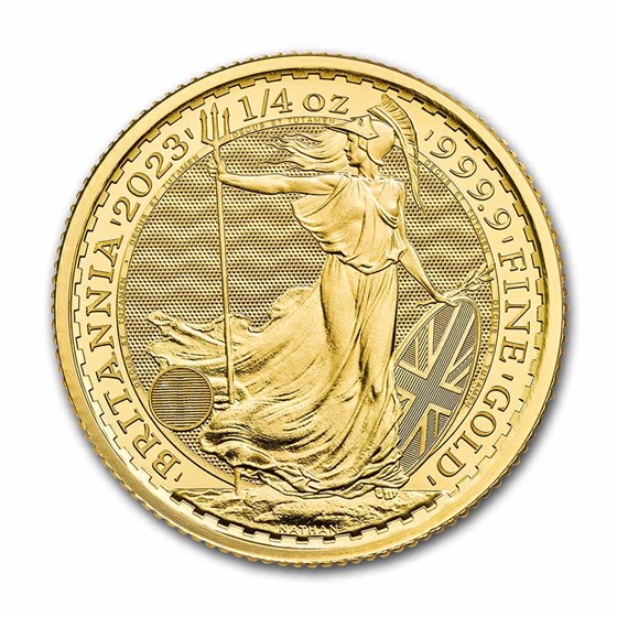 De gouden Britannia 1/4 oz 2023 munten worden geproduceerd door de Britse Royal Mint. Deze munten zijn in Engeland wettig betaalmiddel (25 pond). De munten wegen 7.78 gram en bevatten 99,99% goud.