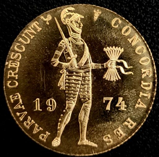 Door de Koninklijke Nederlandse Munt worden elk jaar enkele gouden dukaten geslagen, van het jaar 2020 zijn het er slechts 798. Een uiterst interessante munt met een zeer beperkte oplage. Er staat een kleine letter O bij Oost, en daarbij een Voc schip afgebeeld.