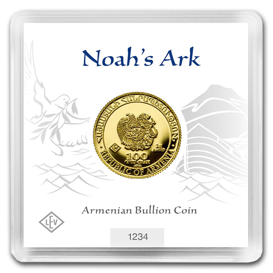 Prachtig!! Anders dan dat kunnen we deze Gouden Noah Ark 1 2022 in vierkante capsule niet noemen!! De 1 grams munt bevat 99,99% goud. Op de achterkant van dit product is het certificaat opgenomen.