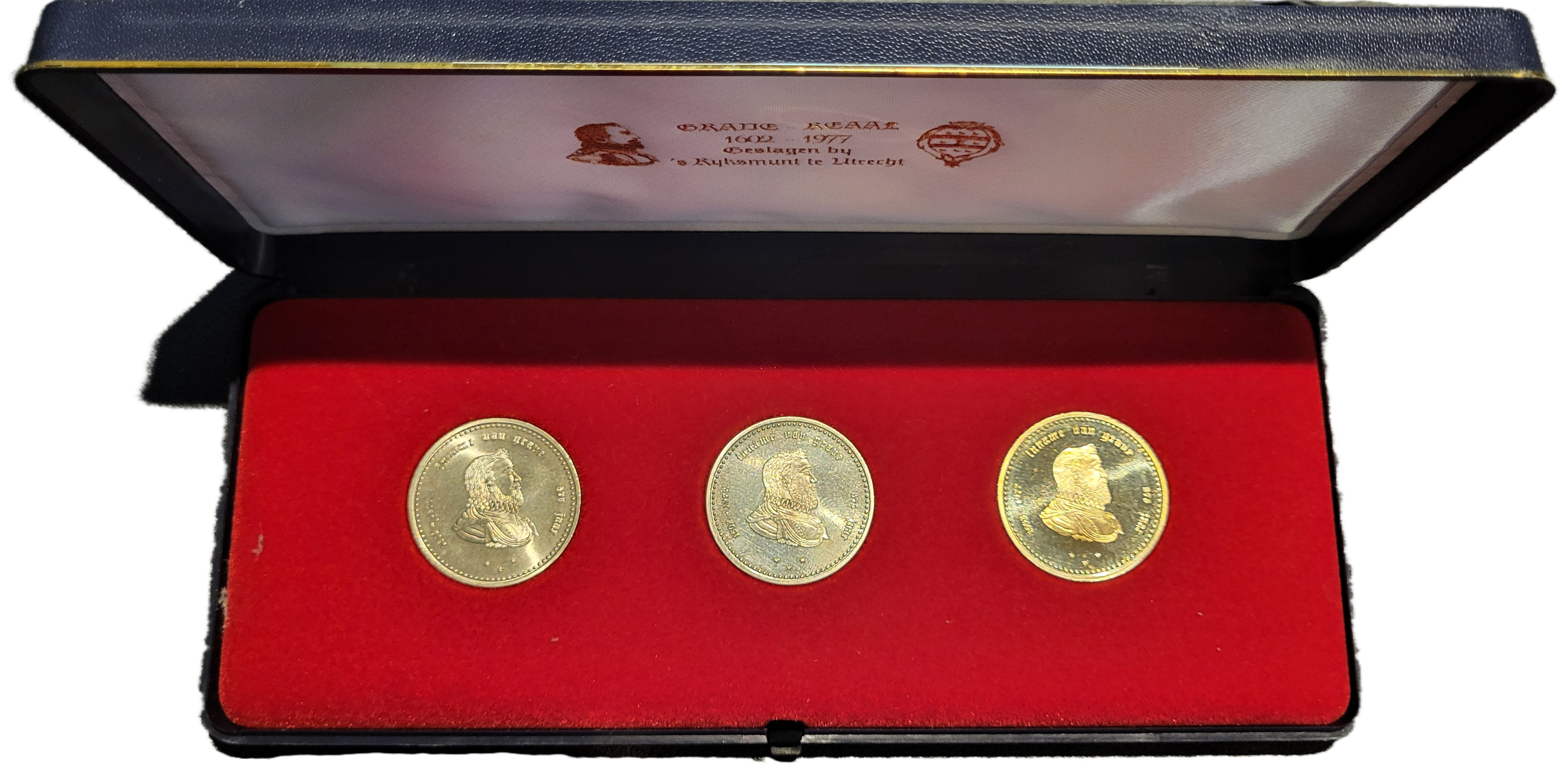 Gouden Penning 1977 inname Grave 375 jaar + gratis zilveren en nikkelen penning in doosje