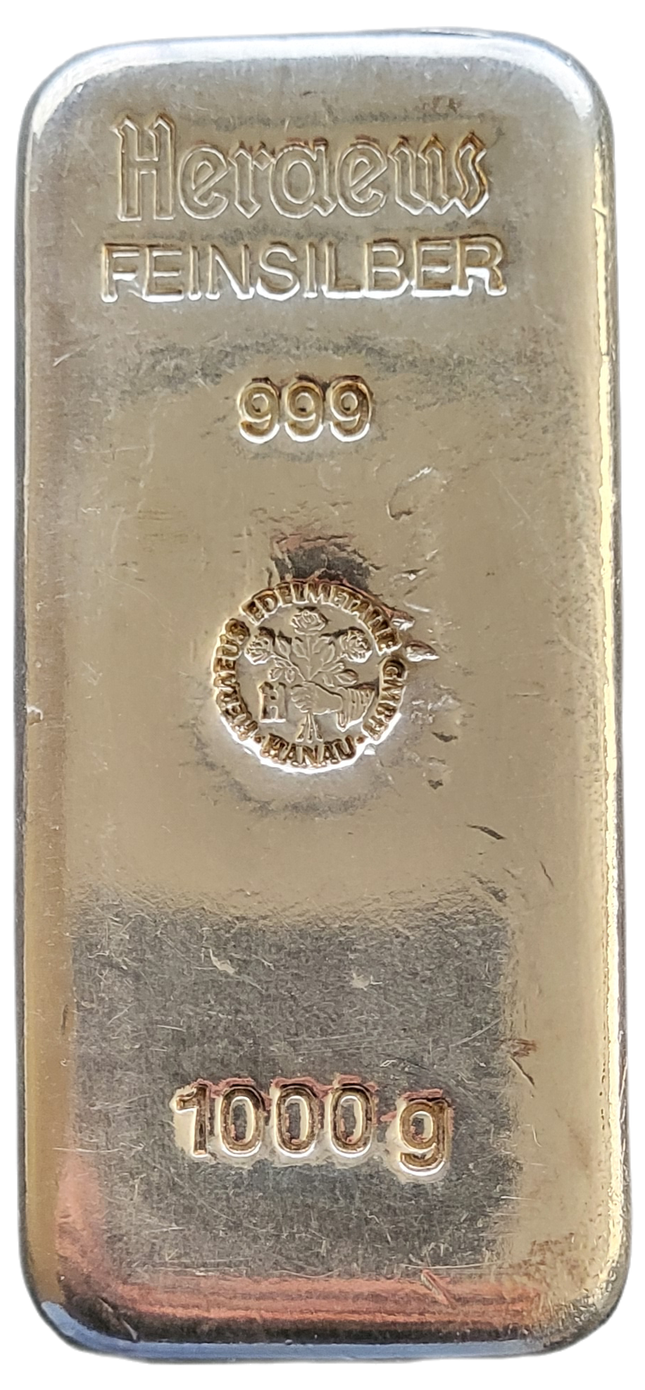 Deze gegoten baar wegen 1000 gram, en bevatten 99,9% zilver. Deze baar werd geproduceerd door het Duitse bedrijf Heraeus te Hanau (Germany).