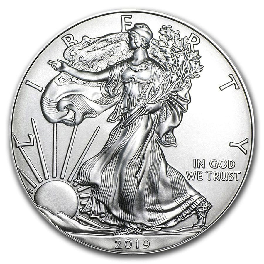 De American Eagle 1 oz 2019 bevat een zilver gehalte van 99,9% en is geslagen door de United States Mint. De American Silver Eagle wordt vanaf 1986 geslagen. De munten wegen 1 troy ounce = 31,1034768 gram.