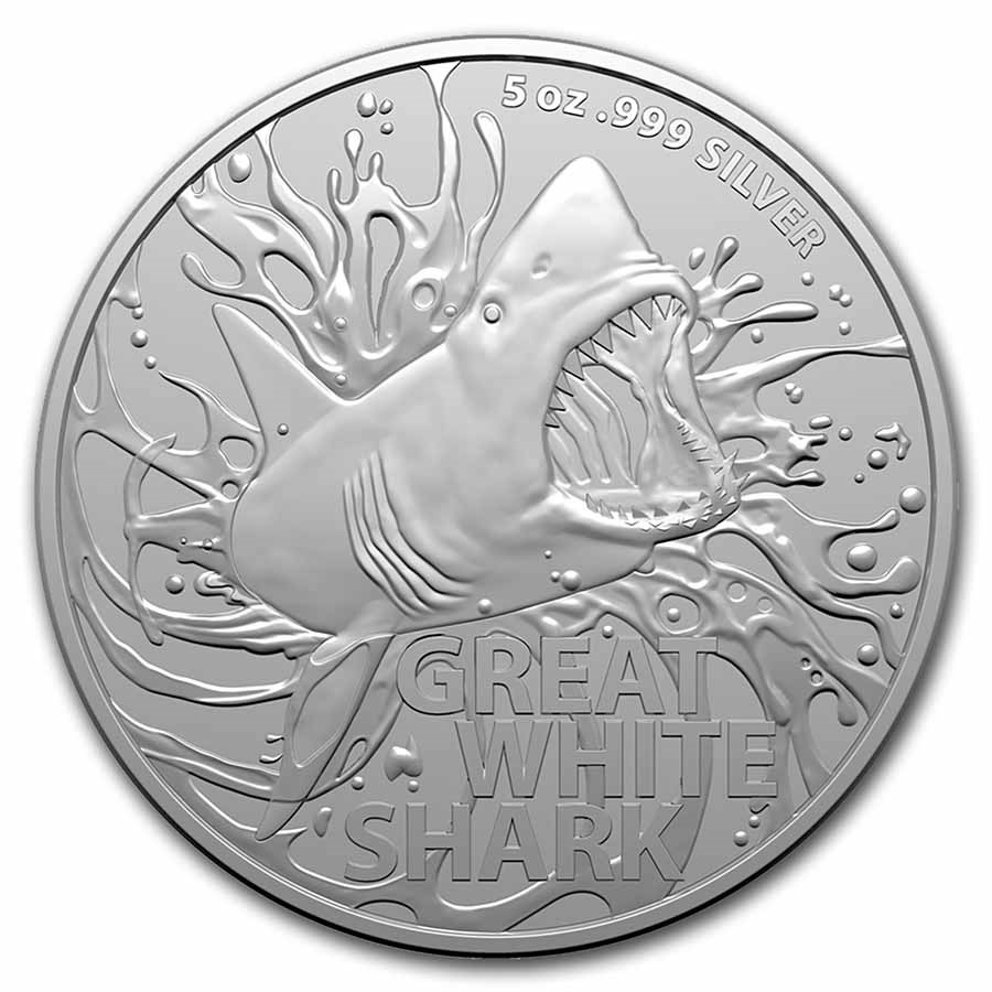 De Australische Great White Shark 5 oz 2022 wordt geslagen door de Royal Australian Mint. Deze zilveren munt is een wettig betaalmiddel in Australië, en bevat een zilvergehalte van 99,9% en wegen 5 Troy ounce = 155,5 gram. Op de voorkant staat een Great White Shark, op de achterkant het portret van Queen Elizabeth II.