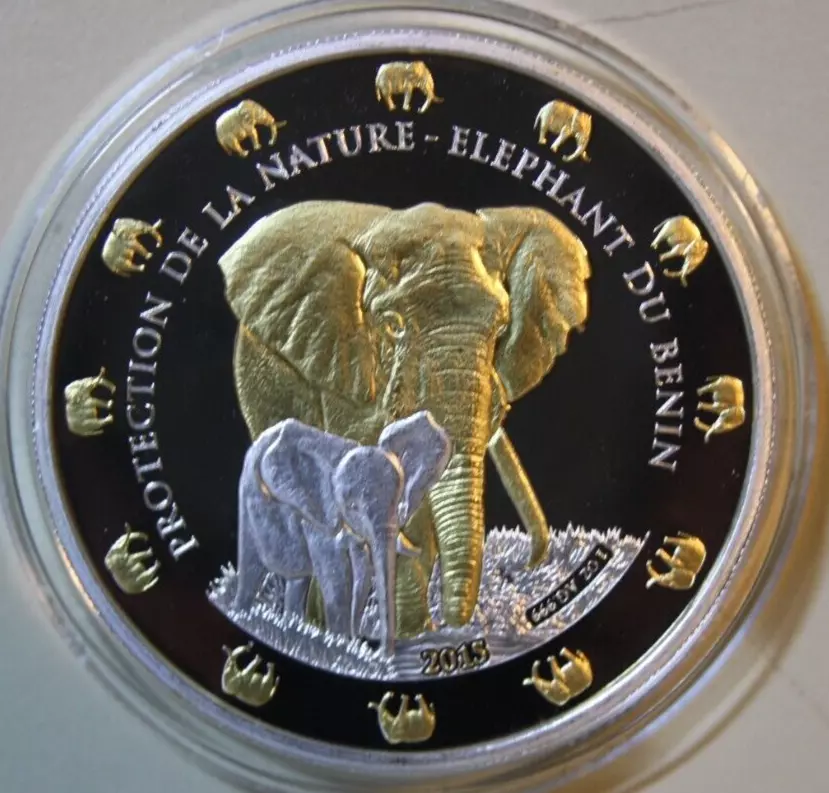 De munten hebben op de voorkant het opschrift “PROTECTION DE LA NATURE – ELEPHANT DU BENIN”. Op de achterkant is het Nationale Embleem van de Republiek Benin.