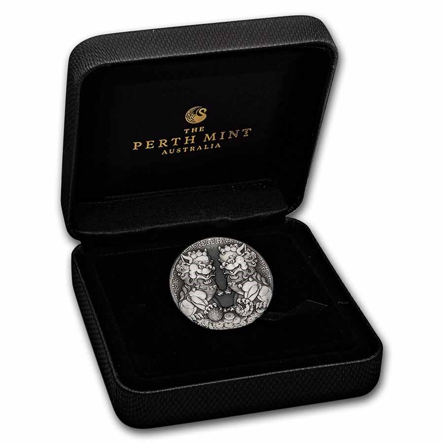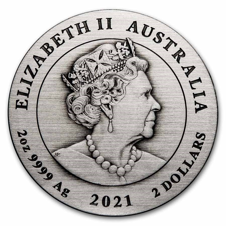 Deze erg mooie munt is geslagen door de zeer bekende Perth Mint uit Australië. Deze munten worden maar in een oplage geslagen van 888 stuks. De munten wegen 2 Troy ounce = 62.2 gram en bevatten 99.99% zilver. Deze munt is Antique Finish geslagen. De oplage is slechts 888 stuks!