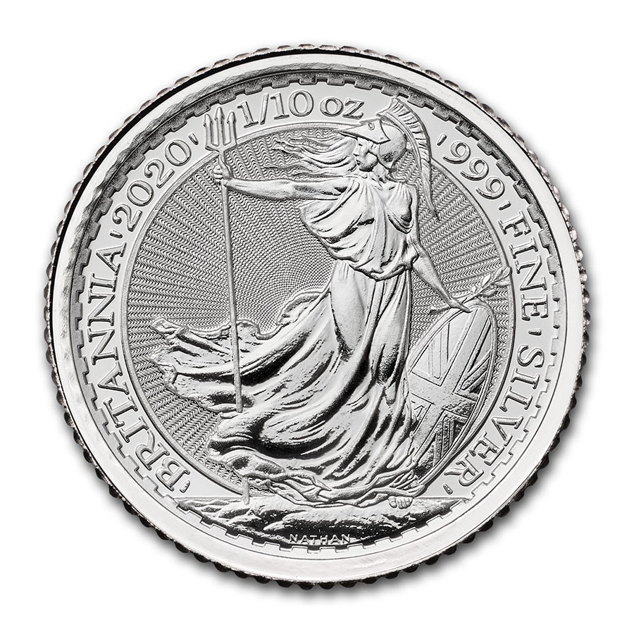 De Britannia 1/10 oz 2020 munten worden geproduceerd door de Britse Royal Mint. Deze munten zijn in Engeland wettig betaalmiddel (20 pence). De munten wegen 3,121 gram en bevatten 99,9% zilver.