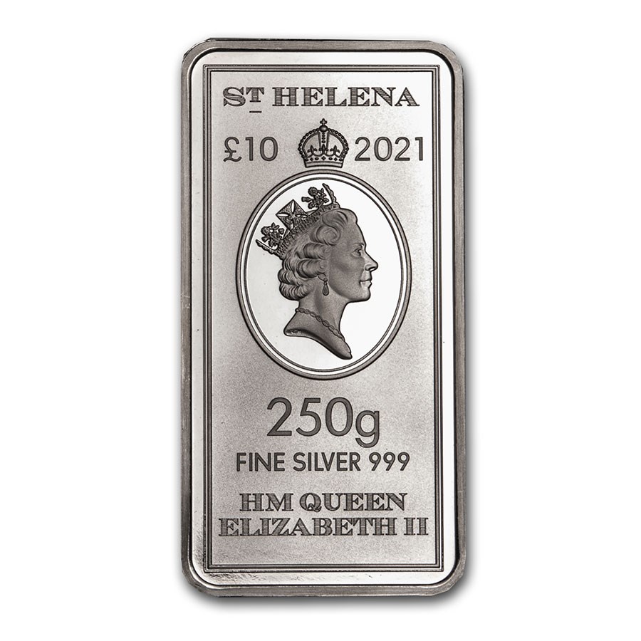 De muntbaar bevat een zilvergehalte van 99,99% . De baren wegen 250 gram oftewel 8,0337 troy ounce.