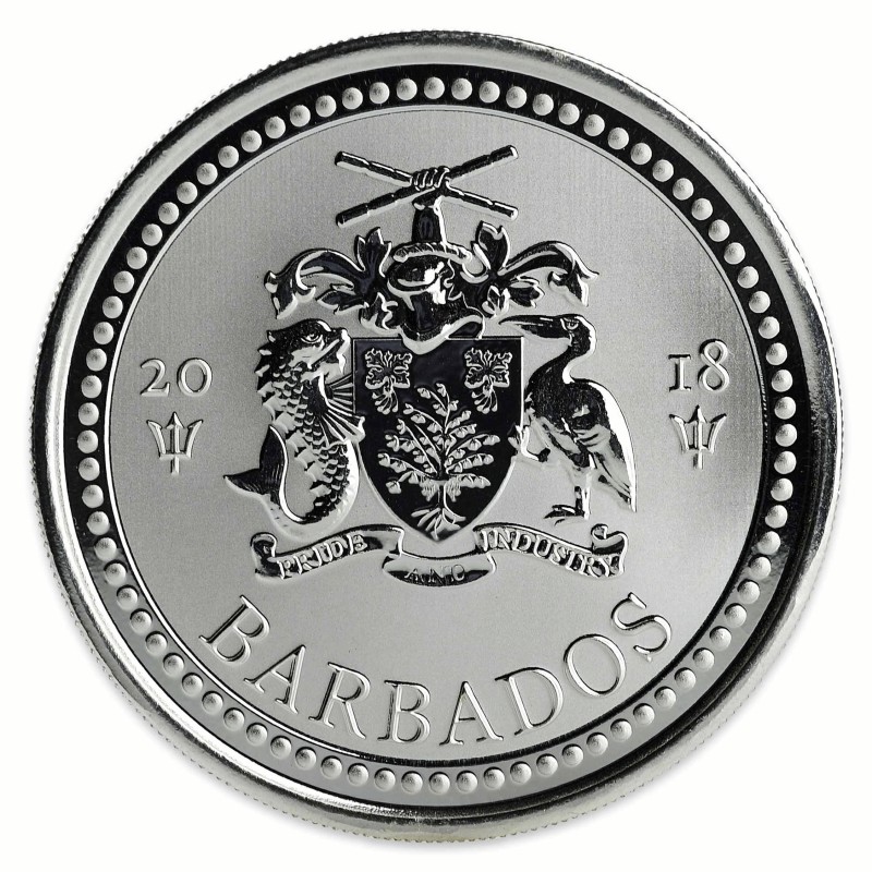 Deze prachtige munt, de Barbados Trident 1 oz 2018, is geproduceerd in opdracht van de Centrale Bank van Barbados. De producent is de Scottsdale Mint. Deze munten zijn in Barbados wettig betaalmiddel (one dollar). De munten wegen 31,1 gram en bevatten 99,9% zilver. De munten zijn in een oplage van 30.000 stuks verschenen.