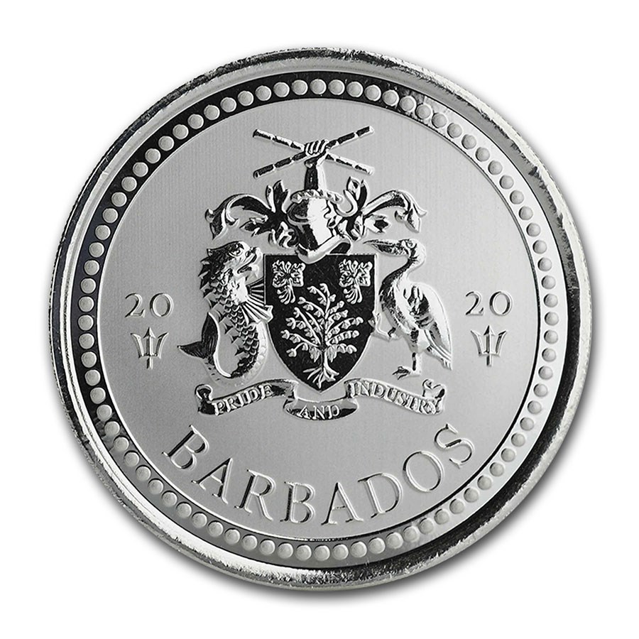 Deze prachtige munt, de Barbados Trident 1 oz 2022 is geproduceerd in opdracht van de Centrale Bank van Barbados. De producent is de Scottsdale Mint. Deze munten zijn in Barbados wettig betaalmiddel (one dollar). De munten wegen 31,1 gram en bevatten 99,9% zilver. De munten zijn in een oplage van 30.000 stuks verschenen.