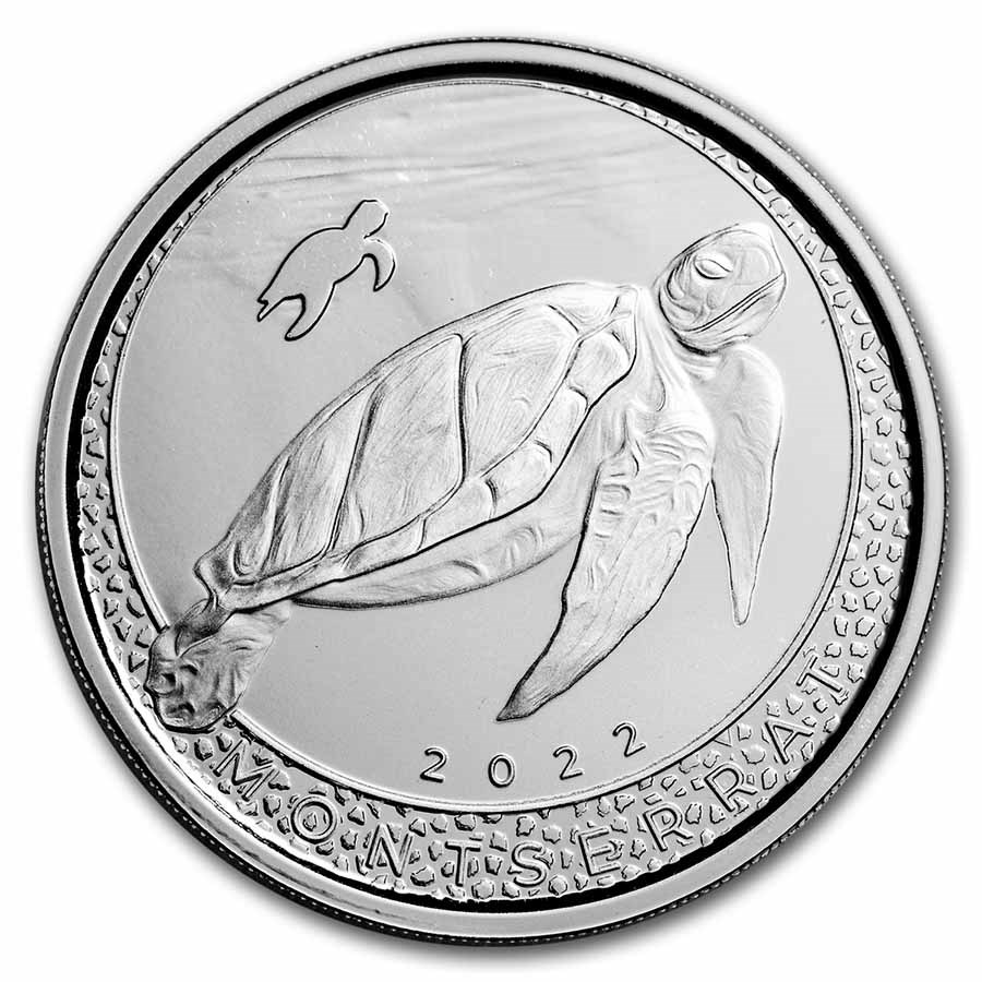 Deze Montserrat Sea Turtle munt uit 2022 wordt geproduceerd door Scottsdale Mint in opdracht van de Eastern Caribbean Central Bank. Deze munten zijn daar wettig betaalmiddel (2 dollar). De munten wegen 31,15 gram en bevatten 99,9% zilver. Daarmee bevatten de munten 1 Troy ounce puur zilver.