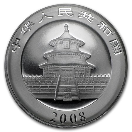 De China Panda uit 2008 bevat een zilver gehalte van 99,9% en is geslagen door de Chinese Mint. De Chinese Panda wordt sinds 1983 geslagen. De munten wegen 1 troy ounce = 31,1034768 gram.