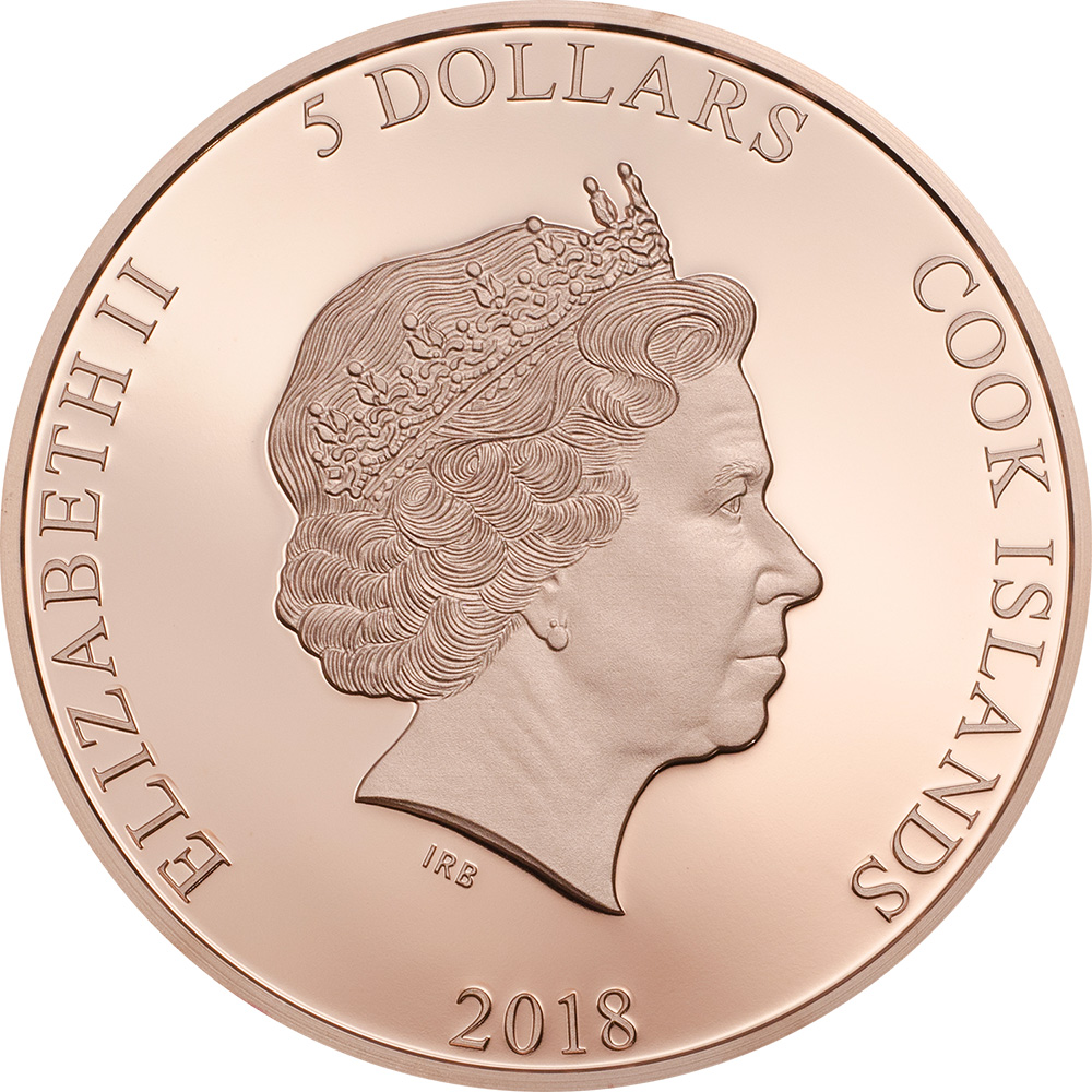 Op de achterkant van deze originele zilveren munt is het prachtige gekleurde masker van de Spaanse schilder Salvador Dali afgebeeld, op een rosé gouden bakstenen achtergrond. Het masker werd beroemd dankzij de televisieserie “La Casa de Papel”, waar een georganiseerde bende dit masker droeg in een poging de Nationale Staatsmunt te beroven. Aan de linkerkant van de achterkant staat de inscriptie: “Salvatore” – de naam van de munt. Op de voorzijde van de munt staat de beeltenis van Hare Majesteit Koningin Elizabeth II en de inscripties: “ELIZABETH II” – de naam van de koningin, “5 DOLLARS” – de nominale waarde, “COOK ISLANDS” – het uitgevende land en “2018”. – het jaar van uitgifte.
